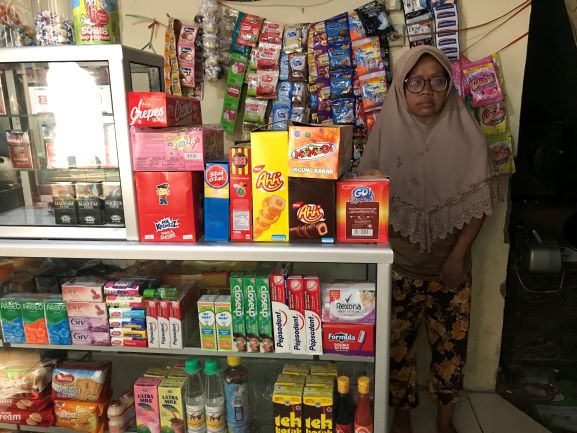 Untuk memenuhi kebutuhan sehari-hari, Bu Wiwi membuka warung kecil dengan modal seadanya. Namun penghasilan yang didapat hanya sekitar 50 – 75 ribu per hari karena warungnya relatif sepi.