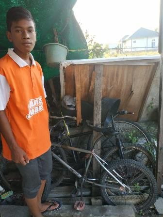 Risky butuh sepeda untuk memudahkan aktifitasnya menimba ilmu dan membantu orang tuanya. Kondisi ekonomi keluarganya yang kurang belum dapat mewujudkan impiannya ini. Yuk Sahabat berbagi bahagia dengan menghadirkan sepeda untuk Risky. Berbuat Nyata, Berbagi Bahagia bersama Sharing Happiness.