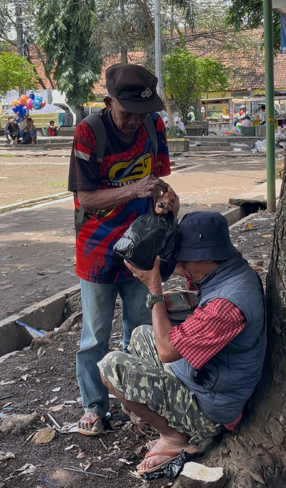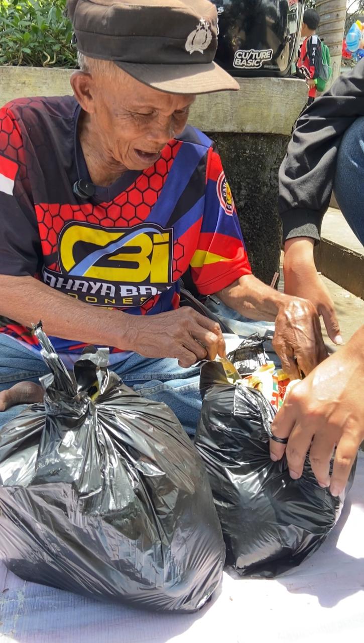 Bahkan Abah Udip sampe rela menyisihkan sebagian uang hasil jasa timbangannya untuk ia belikan sembako dan ia bagikan dengan yang lain..