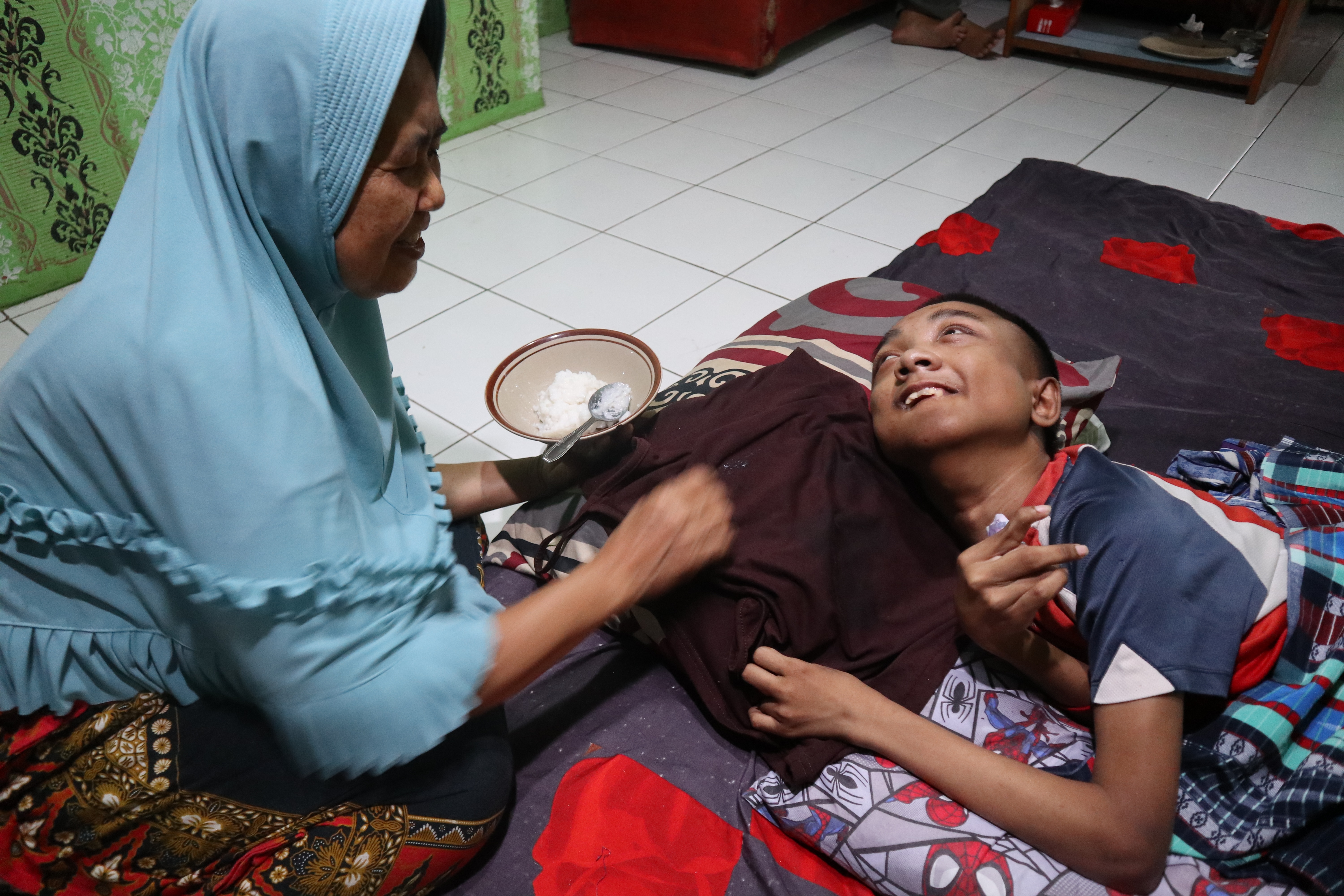 "Dulu mah Dandi masih bisa aktifitas meski terbatas. Cuma sejak berhenti terapi, kondisinya makin kaku. Pengennya dibawa terapi, tapi uangnya ga cukup. Emak sama aki juga udah ga kuat anterin kesana-kesini,” terang Mak Atiah (65).