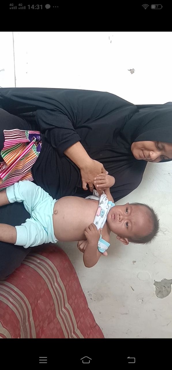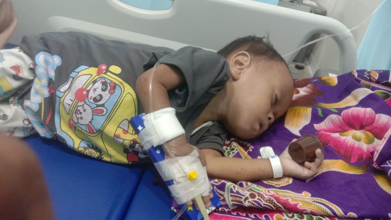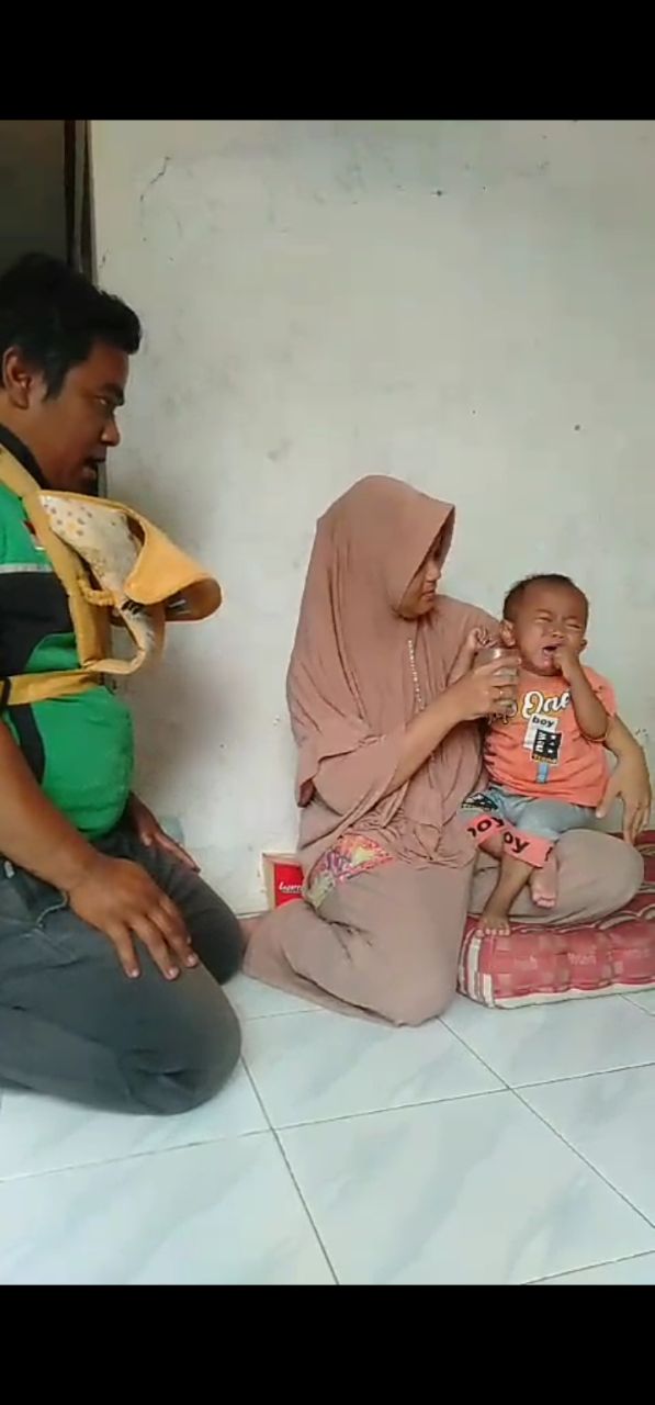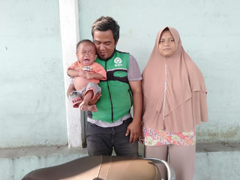 balita yang digendongnya ini usianya 2 tahun 2 bulan, sejak usia 9 bulan ternyata alami Tb usus. dan saat ini mengalami komplikasi, menjerat ke stunting, dan anemia, Harta benda sudah dikerahkan namun tak sembuh juga, tersisa motor yang digunakannya mengojek. pak eri bahkan tak mampu beli susu tuk anaknya, apalagi proses pengobatan yg sampai bertahun tahun.