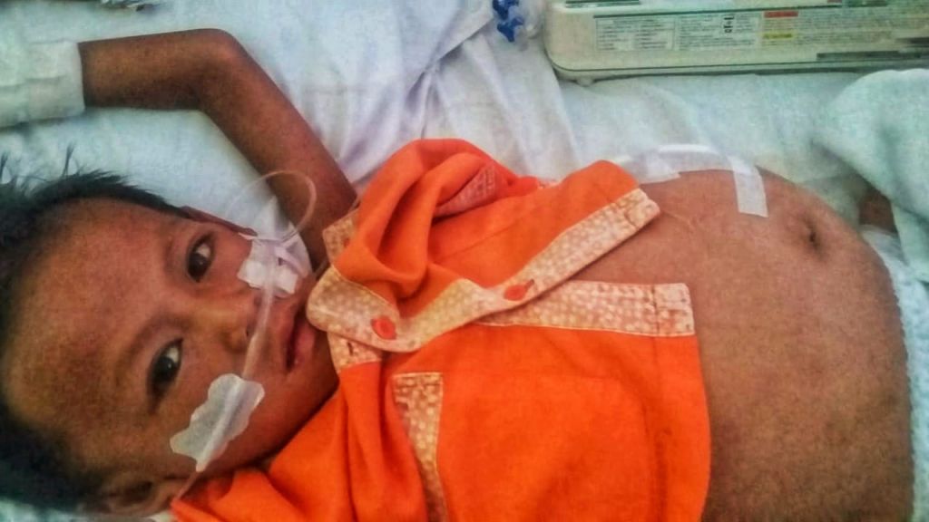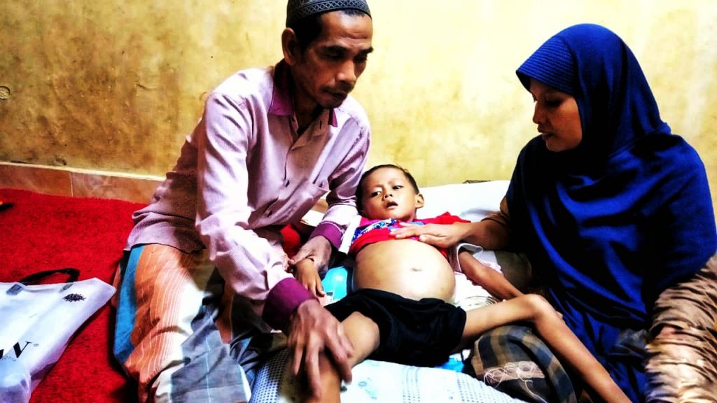 Anwar tak hentinya menangis, Ia menahan rasa sakit, perutnya terus membesar akibat tumor yang bersarang diginjalnya.