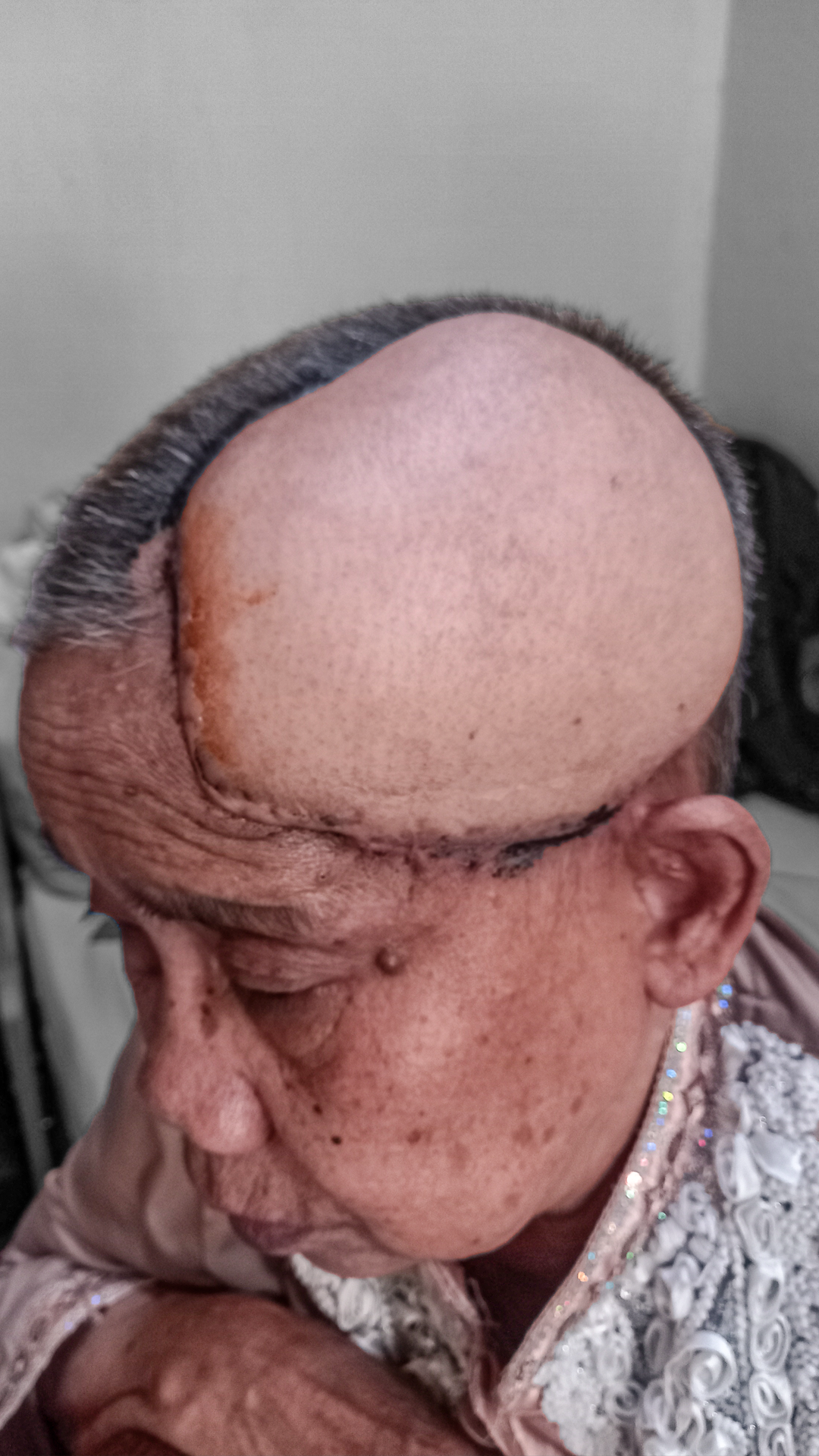 Kain kasa yang ada dikepala Nenek Amih harus terus diganti, karena kalau tidak akan penuh dengan nanah dan darah. Keadaan saat ini membuat tumornya semakin parah.