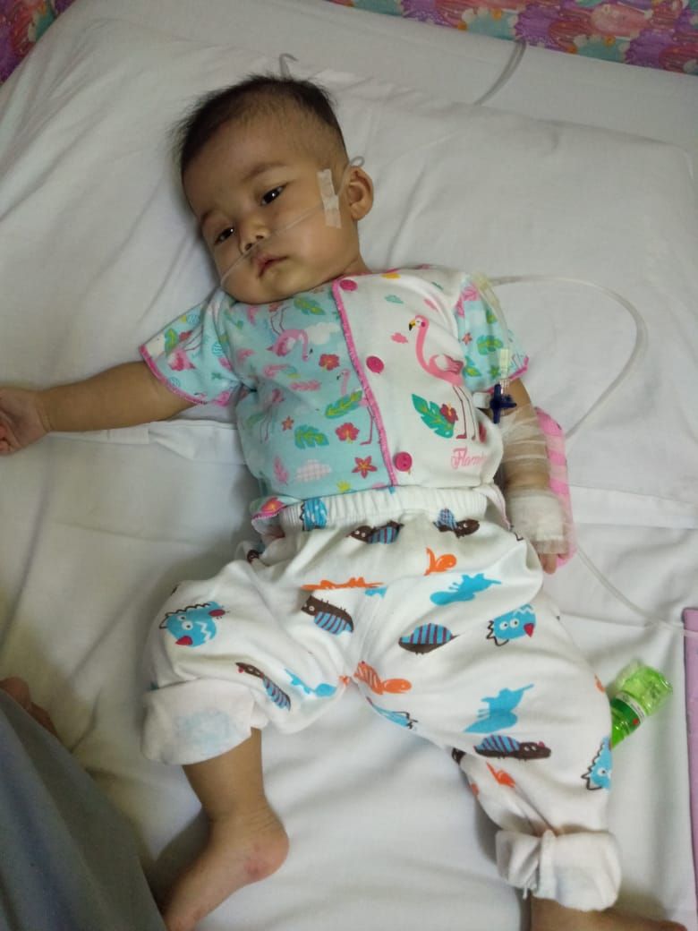 Di usianya yang baru menginjak 5 bulan, bayi yang akrab disapa Genyas ini harus berjuang melawan penyakitnya.