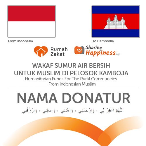 Mari Berdonasi “Wakaf Sumur Air Bersih Untuk Muslim Di Pelosok Kamboja” melalui Sharing Happiness. Bayangkan bagaimana ketika Air tersebut bisa menghidupi dan digunakan untuk wudhu dan beribadah saudara-saudara kita disana.