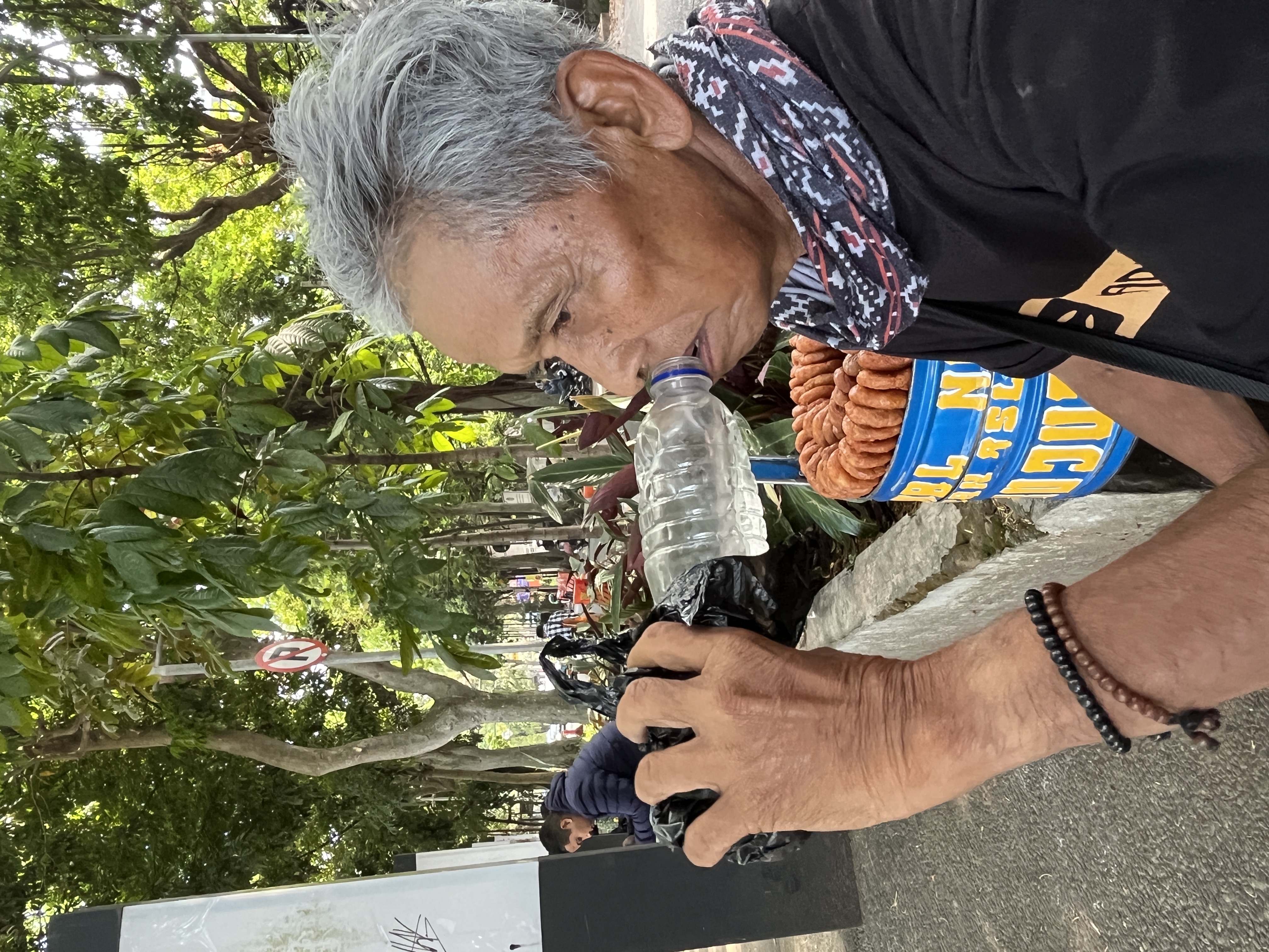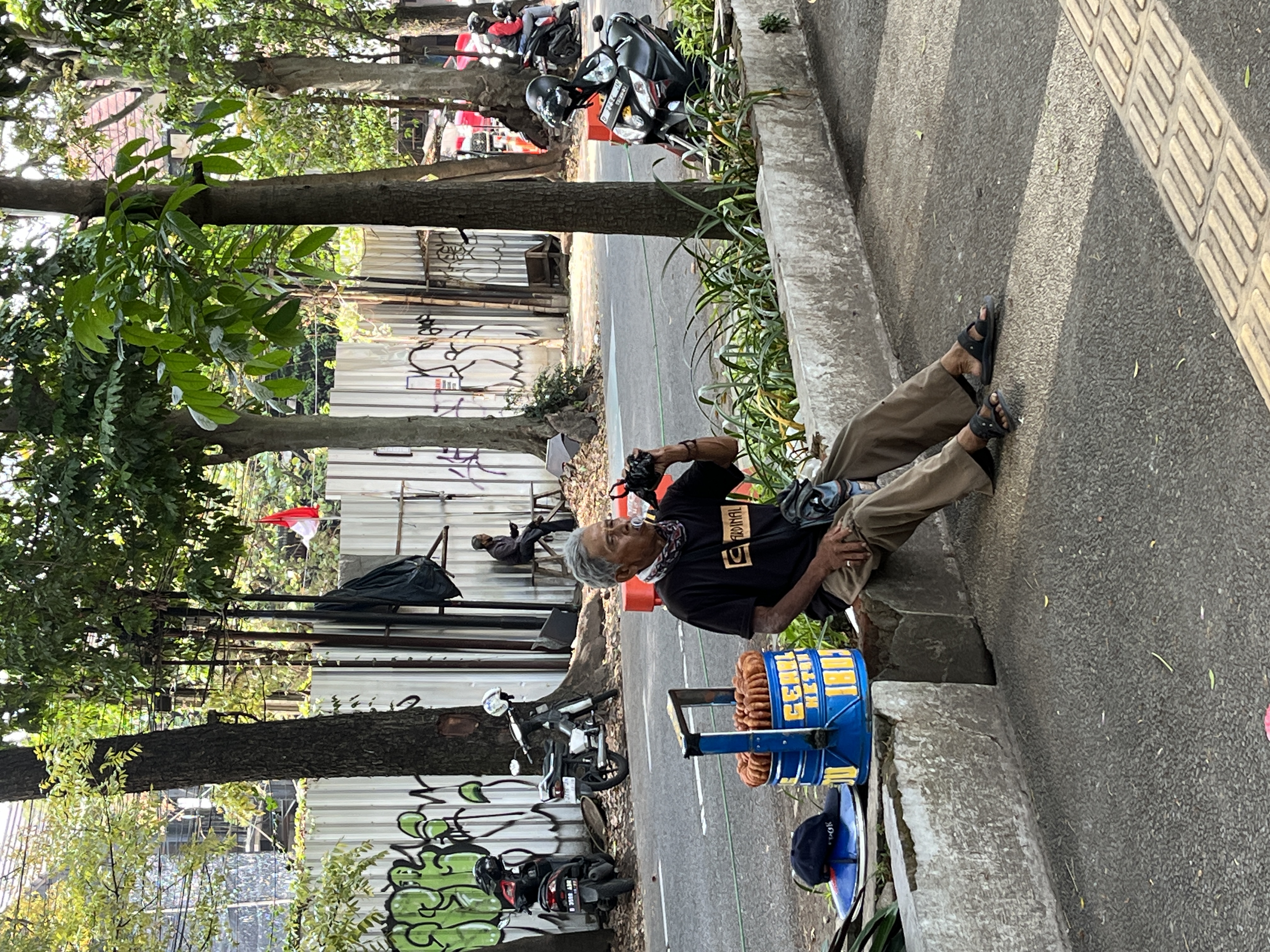 Setiap hari melawan panasnya terik matahari sambil berjalan kaki dengan membawa tanggungan gemblong-nya menjadi aktivitas yang sudah biasa bagi Abah.