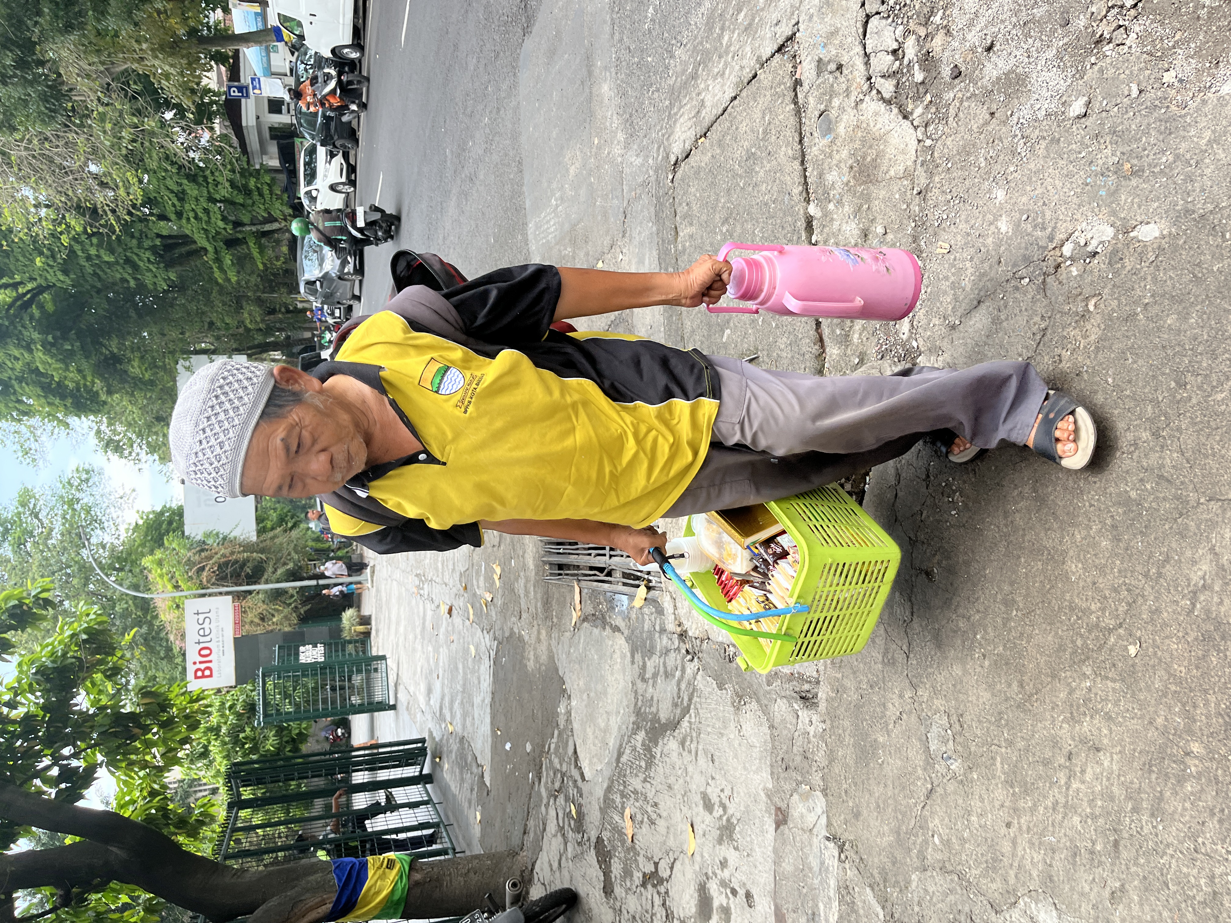 Berjalan berkeliling belasan kilometer sudah biasa bagi Abah Yatno yang saat ini sudah berusia 74 tahun. Di masa tuanya Abah masih harus berjuang mencari nafkah dengan berjualan kopi keliling.
