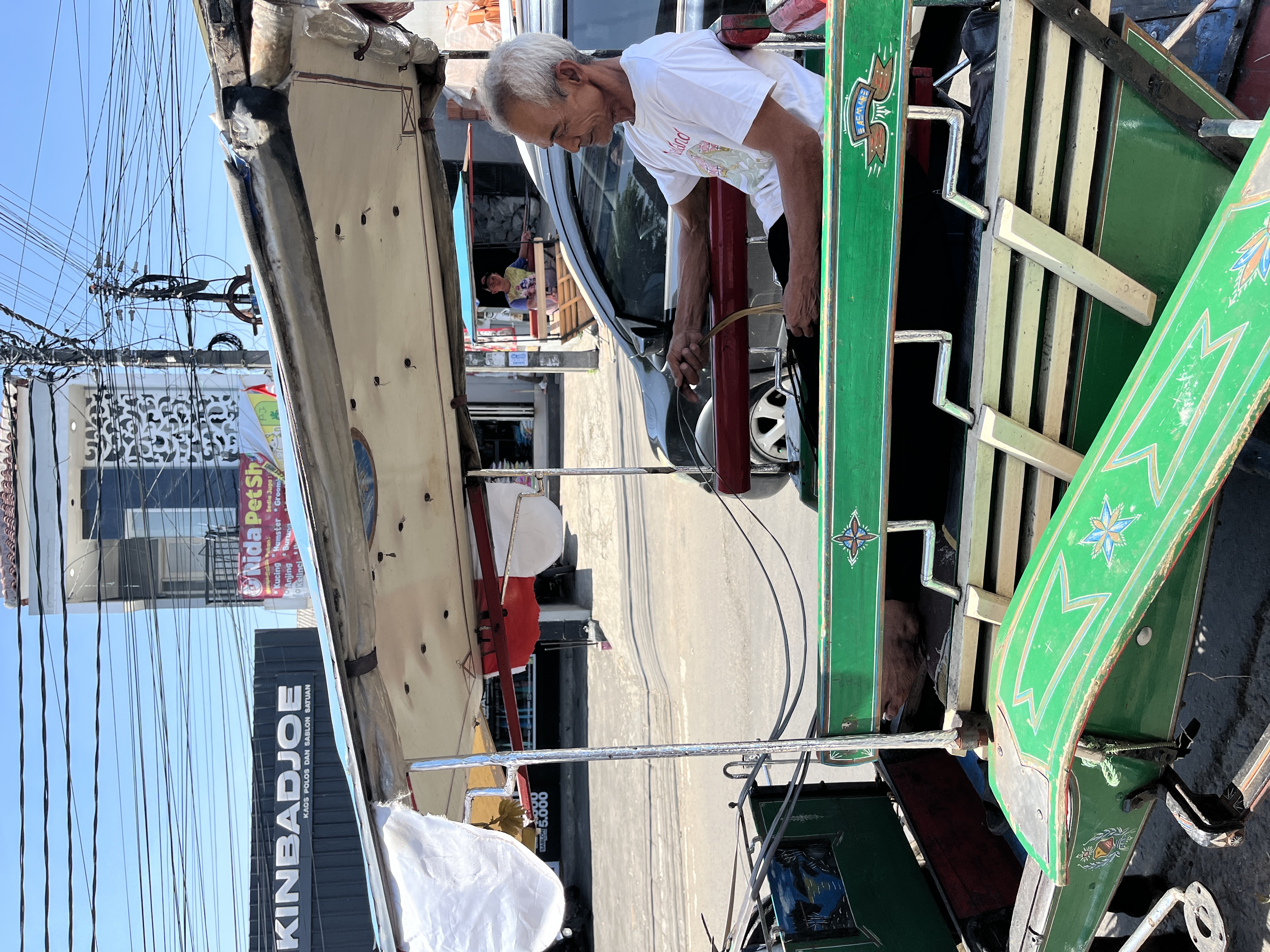 “Gini aja Abah mah, sehari dapet 30 ribu juga udah Alhamdulillah. Ini dari pagi sampai siang Abah baru dapet 5 ribu, baru satu penumpang.”