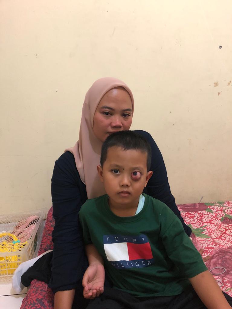 Tak mampu rasanya jika ibu Aden harus mencari biaya operasi Aden yang kata dokter bisa 2 atau 3 kali apalagi untuk pembelian bola mata palsu yang bisa capai belasan juta.