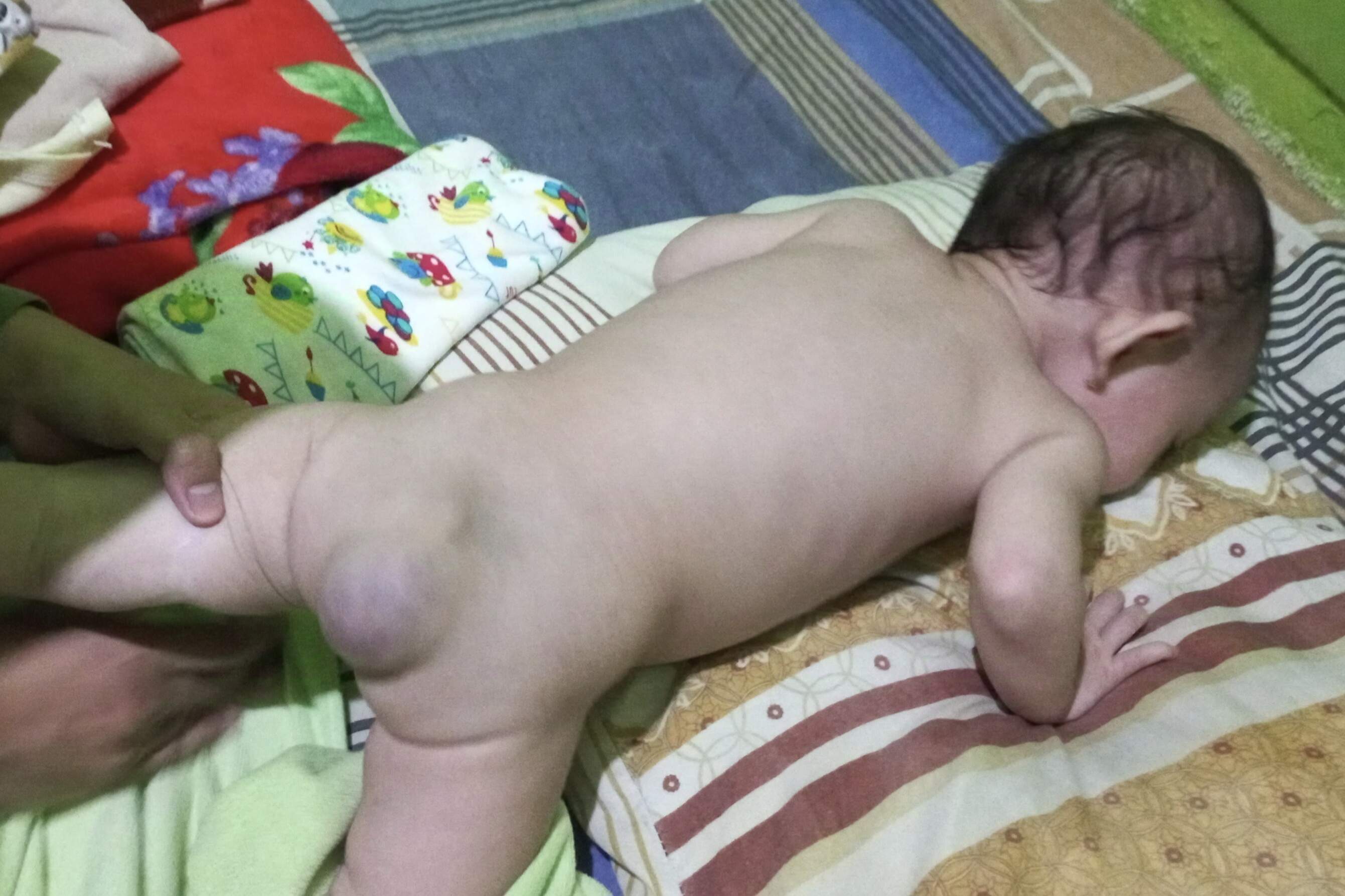Jelang dua bulan setelah A Fiya lahir, kondisinya terlihat normal. Namun, pada usia dua bulan, keluarga mulai melihat adanya benjolan kecil di bagian ekor dan dinding pantatnya. Meskipun AFiya lahir tanpa benjolan, benjolan tersebut kemudian muncul dan membesar, menghambat proses buang air besar (BAB).