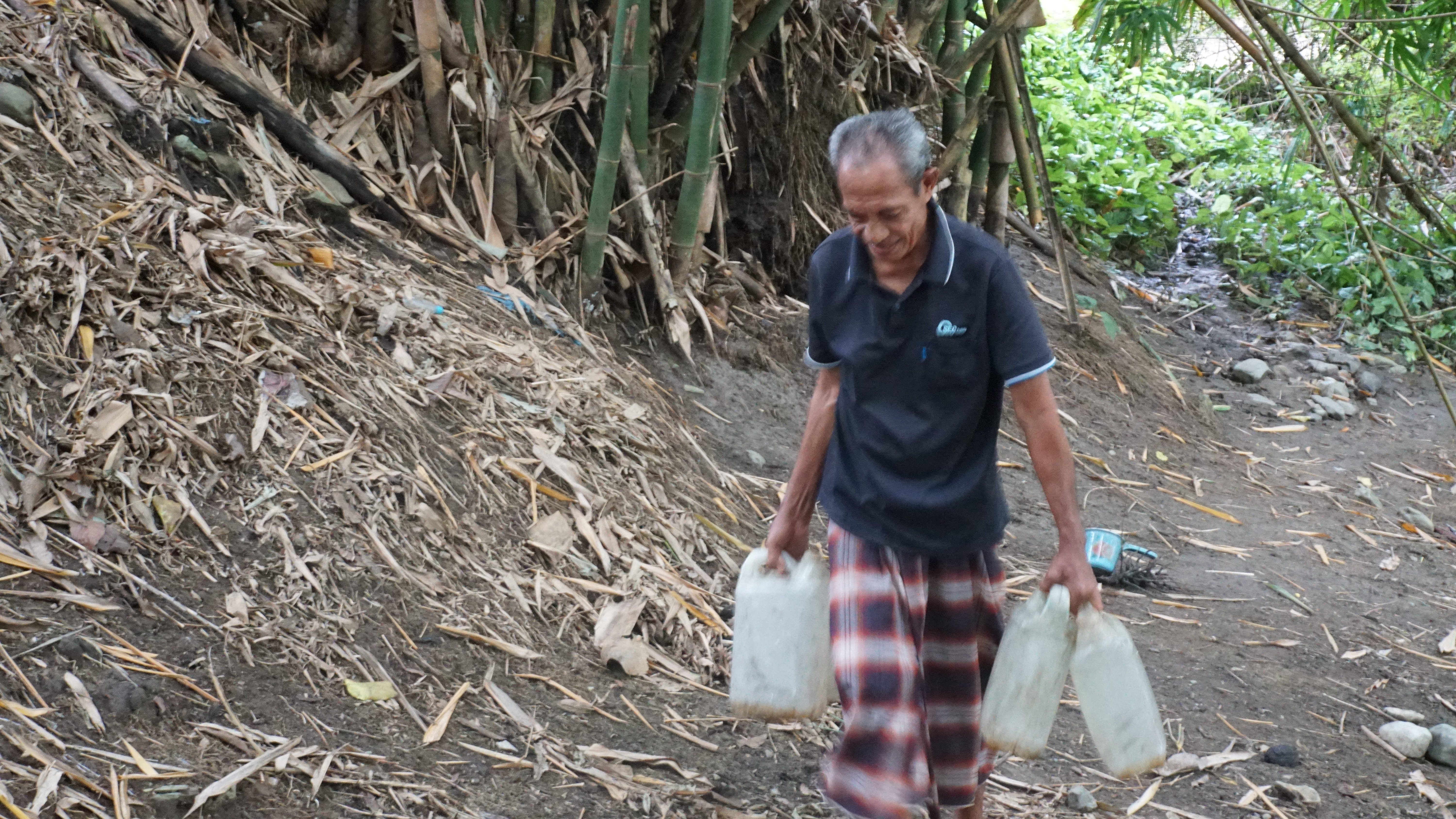Di usia senjanya, Ismail Jalil (67), seorang petani dari Kampung Pu'u Au, Desa Ndorurea, Kecamatan Nangapanda kabupaten Ende, NTT, harus menempuh perjalanan sejauh 900 meter setiap hari hanya untuk mengambil air. Air yang diambil dari sungai ini bukan hanya untuk minum, tetapi juga untuk mandi, mencuci, dan kebutuhan sehari-hari lainnya. Sayangnya, sumber air yang ada tidaklah layak dan sering kali mengering saat musim kemarau tiba.