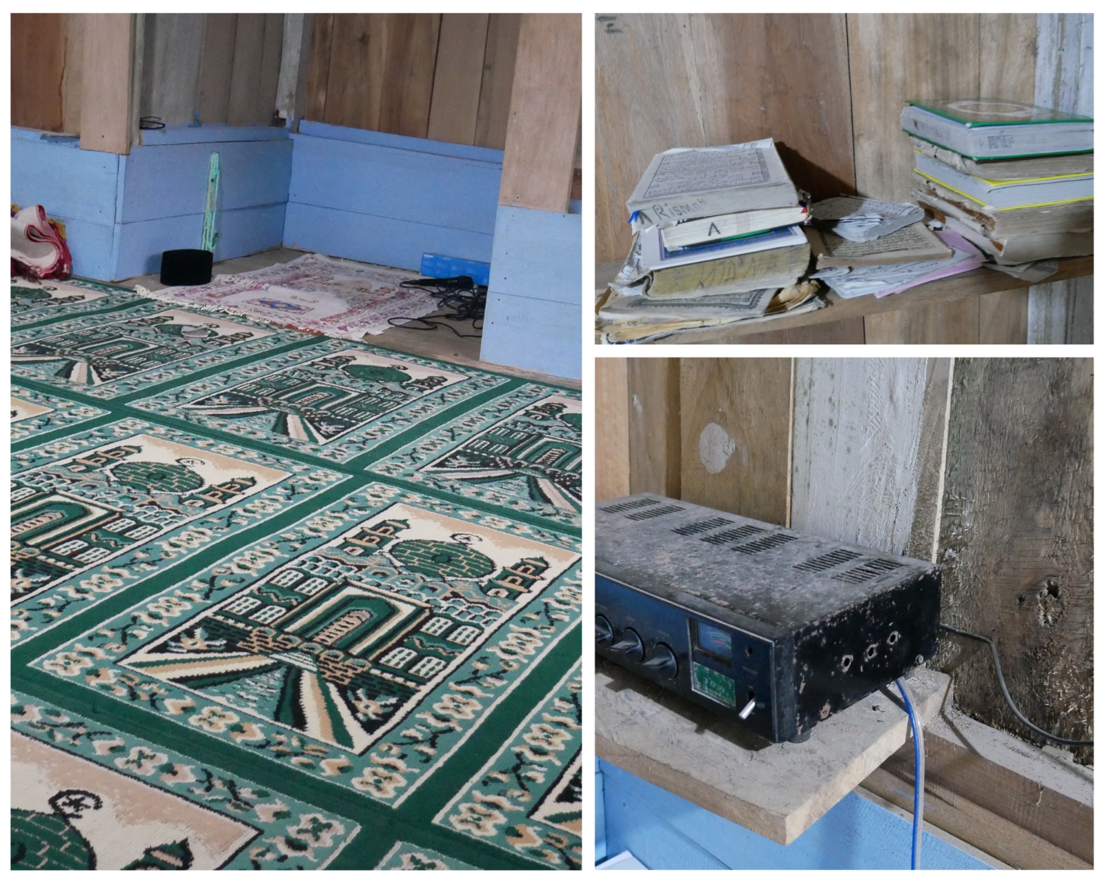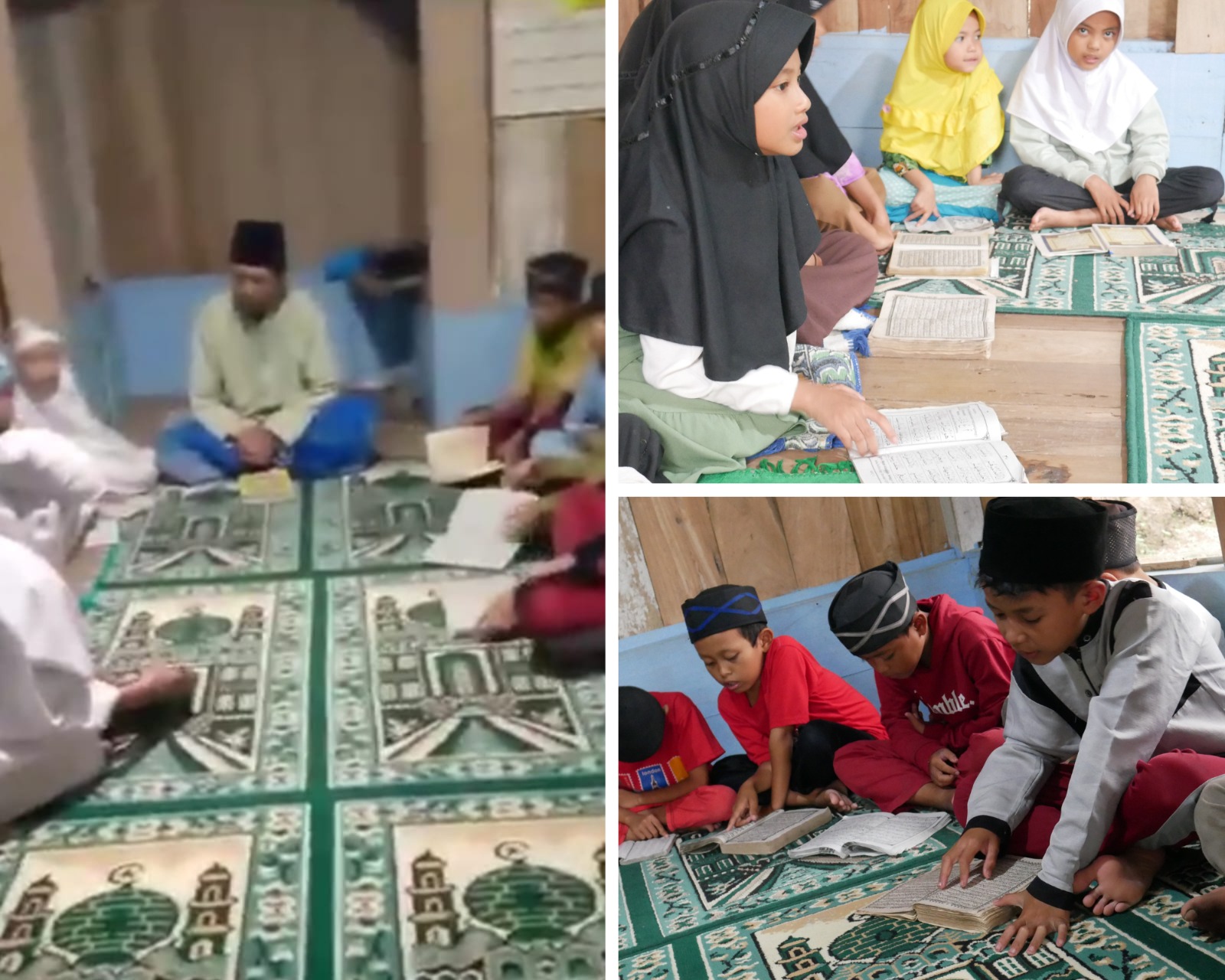 Salah satunya masjid Miftahul Fallah yang terletak di Kampun Cipeundeuy, pelosok Cianjur selatan Jawabarat, yang mana Masyarakat di sekita Masjid ini baik Anak-anak, remaja, para orang tua bahkan lansia mau tidak mau harus belajar dan mengaji Al-Qur’an di Masjid panggung yang seluruh bangunan nya Cuma terbuat dari papan kayu yang sudah kropos, lapuk bahkan terdapat beberapa tambalan di dinding serta di atapnya, begitupun dengan sebagian jendelanya ada yang tidak memiliki kaca, pintunya pun sudah susah dibuka tutup, sedangkan lantainya hanya dari papan kayu yang dilapisi karpet sajadah yang lepek dan kusam dan untuk atapnya pun dibeberapa bagian terdapat yang berlubang karena genteng nya sudah pada retak akibatnya jika hujan deras atau di sertai angin maka air membasahi karpet sajadah yang berada di bawahnya, hal itu tentunya sangat mengganggu para jema’ah yang sedang melakukan Shalat atau mengaji, begitupun jika terjadi hujan deras yang disertai dengan angin kencang dipastikan mengaji baca Al-Qur’an pun sering di liburkan, takut membahayakan keselamatan para jema’ah terutama Anak-anak jika Masjid tersebut Ambruk namun jika Shalat masih ada yang suka melakasanakan di masjid terutama Bapak-bapak meski jumlahnya hanya sedikit.