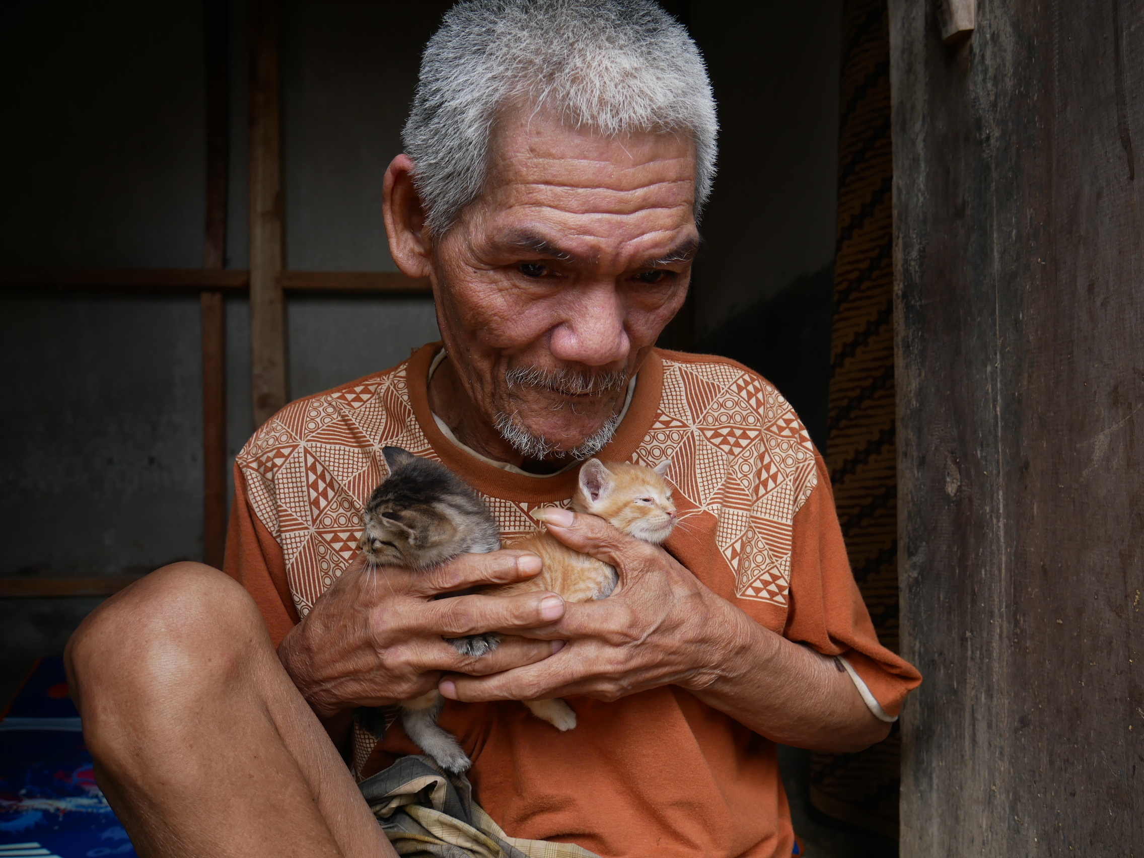 “Dulu sempat nikah, tapi istri Abah sudah meninggal karena sakit. Abah ga punya anak, jadi cuma ditemenin kucing aja di sini,” ujar Abah Saep.