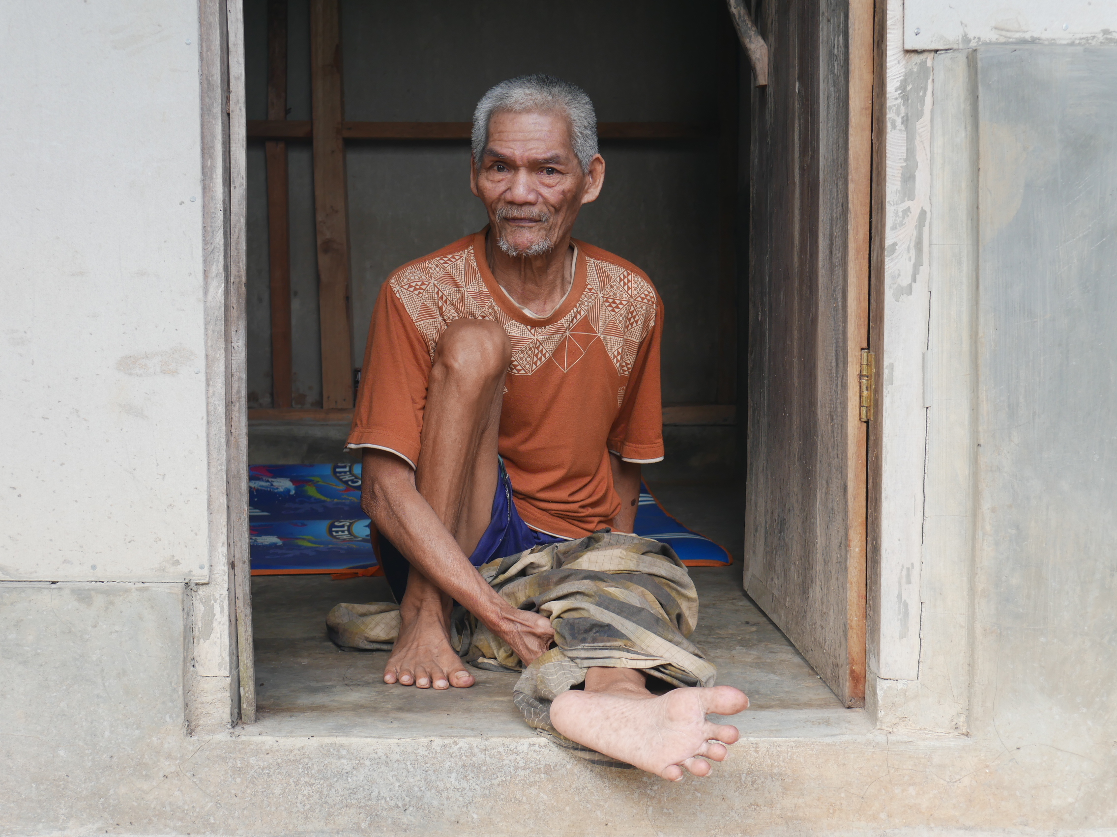 Akibat kurangnya penanganan medis, saat ini tulang paha Abah Saep (76) yang patah menjadi luka terbuka yang semakin busuk dan mengeluarkan bau menyengat. Luka itupun hanya dibalut menggunakan kain usang dan disangga 2 bilah kayu tua untuk menopang kakinya.