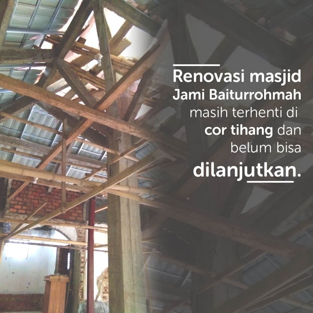 Meskipun di desa sebelah ada masjid lain tapi warga harus rela menempuh jarak 1 km lebih untuk bisa kesana. Hingga tulisan ini dibuat renovasi masjid jami baiturrohmah masih terhenti di cor tihang dan belum bisa dilanjutkan.