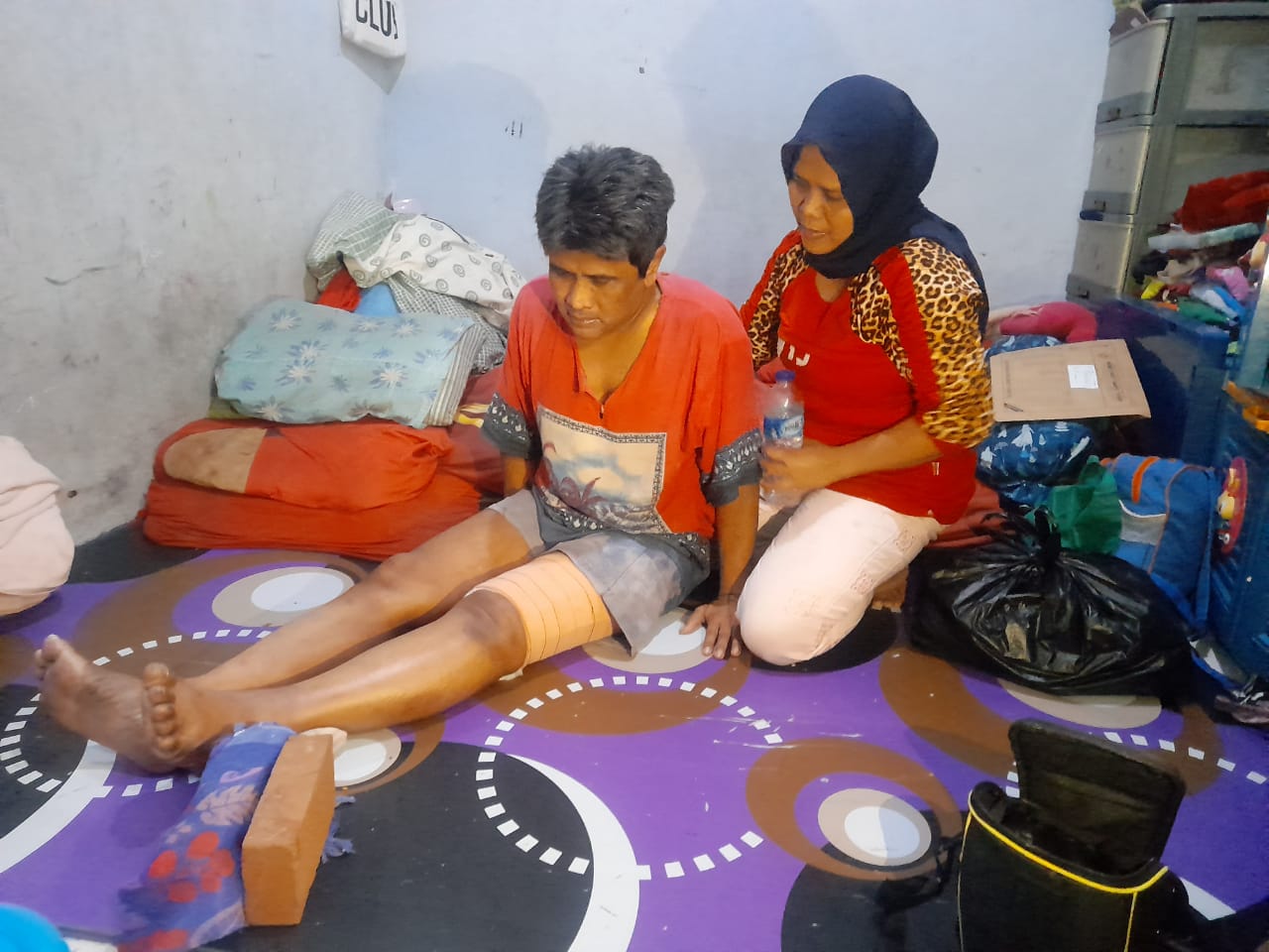 Semangat Pak Gunawan (51) untuk mencari nafkah terasa berat, kini tak banyak yang beliau dapat lakukan selain duduk dan terbaring dikarenakan tulang pahanya patah.
