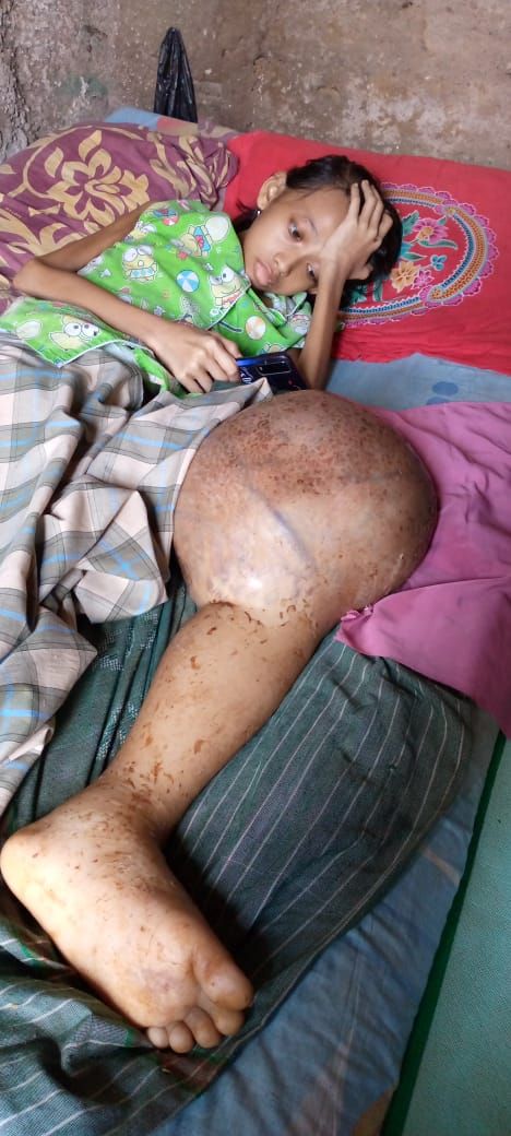 Kondisi saat ini Saskia begitu memprihatinkan. Kakinya terus membengkak dan mengeluarkan lendir berbau.