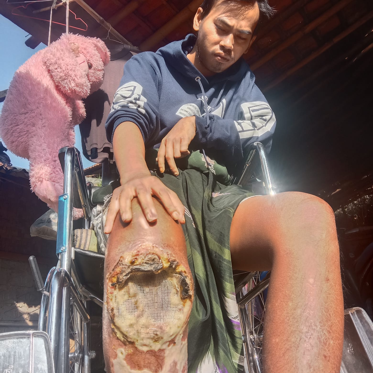 Namun sejak ramadhan 2024 kakinya semakin bengkak dan nyerI Sekali di rasakan ahmad, pernah dilakukan tindakan operasi pengangkatan tumor nya namun kakinya kembali bengkak dan bahkan bekas operasinya menimbulkan luka terbuka.
