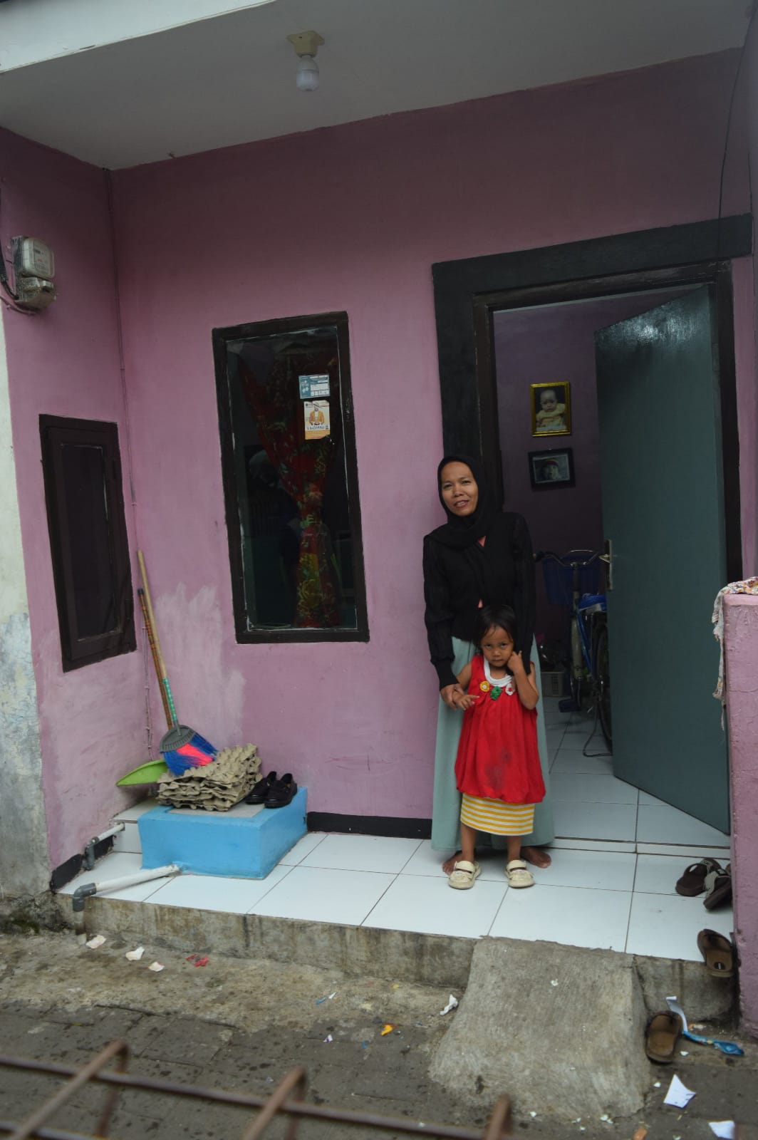dengan keterbatasa tempat tinggal sehingga Setiap malam Bu Ica dan ke empat anaknya tidur satu kasur berlima,