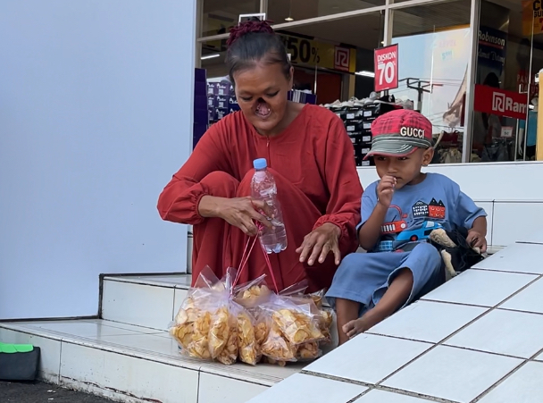 Selain itu Bu Ai juga nyambi jualan keripik singkong, setiap bungkus keripik bua ai dapet 1000 rupiah. mirisnya keripik singkong Bu Ai jarang laku karna yang beli pada takut liat kondisinya. Semua orang takut dan jijik melihat wajahnya yang berlubang. tak jarang Bu Ai suka dijauhi.