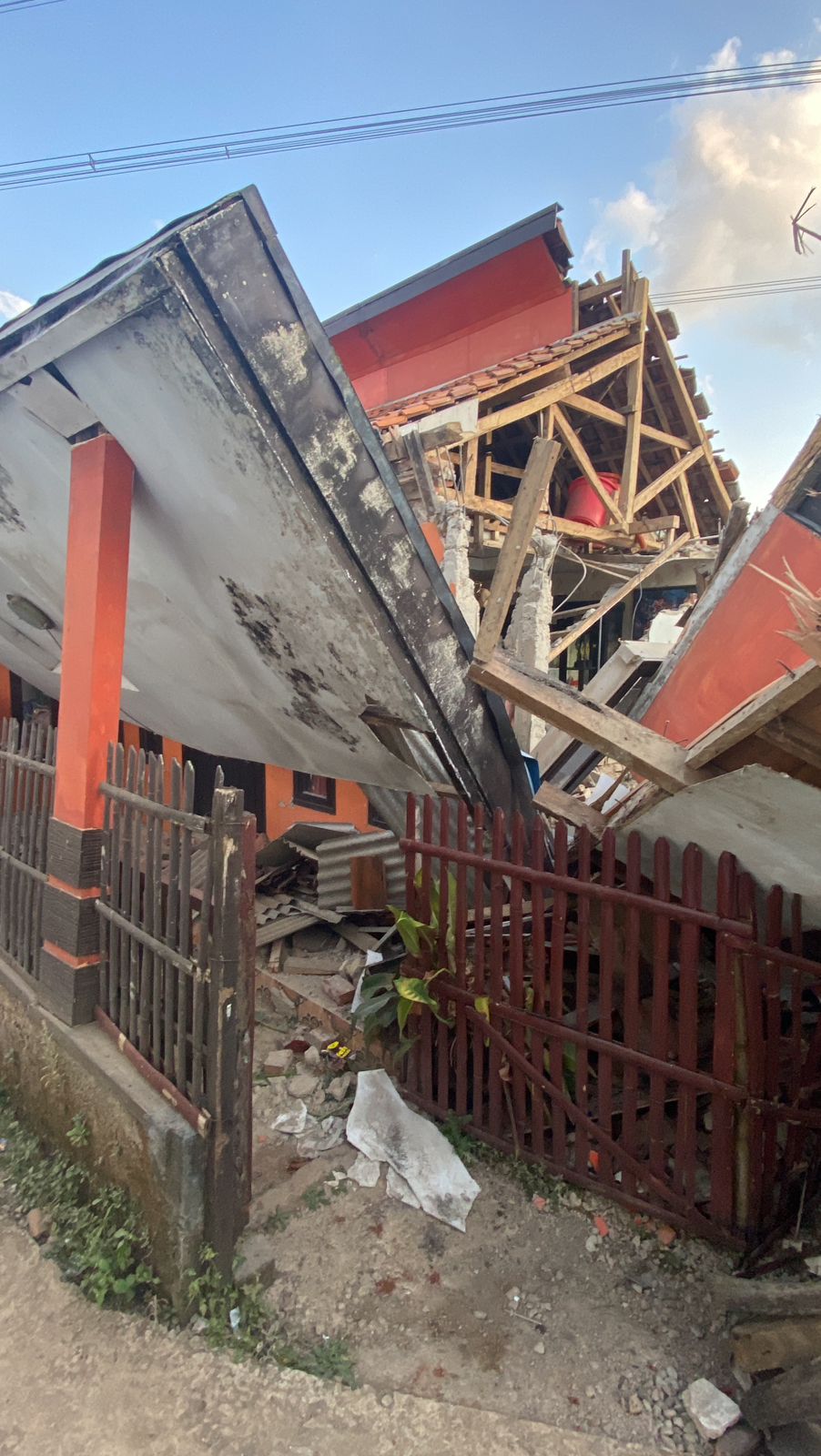Kerusakan parah terdampak dimana-mana. Rumah-rumah rusak dan runtuh.
