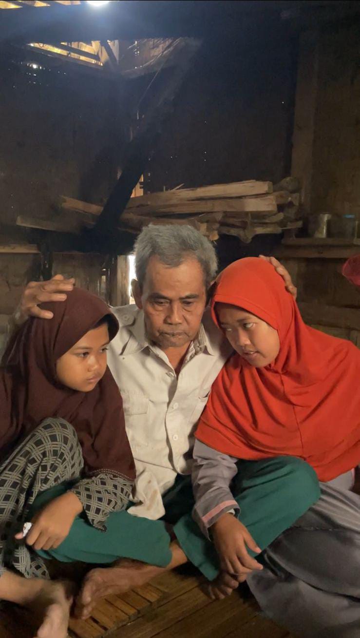 Abah tak minta banyak, hanya ingin anak-anaknya bisa makan dan bersekolah seperti anak lain. Tapi tanpa bantuan, Abah dan dua anaknya bisa kembali kelaparan malam ini. Dengan bantuanmu, Abah Aban bisa mendapatkan makanan bergizi setiap hari dan biaya pendidikan untuk Ulfa serta Sila. Setiap donasi yang kamu berikan akan digunakan untuk memenuhi kebutuhan pokok keluarga Abah serta membantu biaya sekolah anak-anaknya.