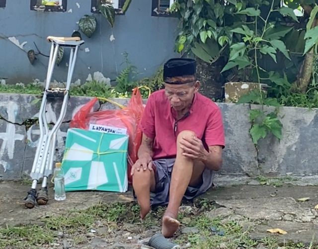 Sudah lebih dari 5 tahun penyakit diabetes terus menggerogoti sampai Abah kehilangan satu kakinya. kini menyebar ke kaki satunya yang sudah mulai habis jarinya. Abah bukan tak mau berobat, tapi faktor gak ada biaya Abah gak bisa berobat.