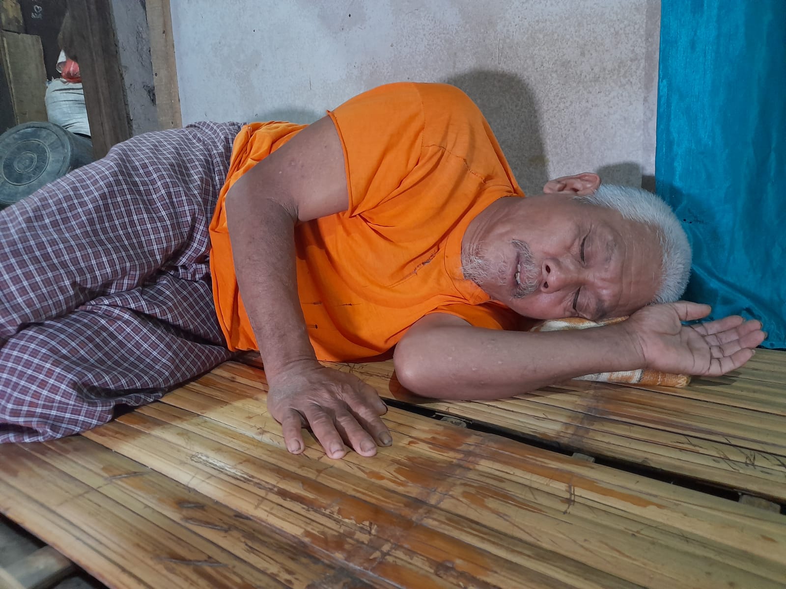 Jika sakit mendera, Abah hanya bisa menangis sambil merintih menahan rasa sakitnya sendirian. Tak ada makanan ataupun obat yang dimiliki, Abah hanya bisa berharap dalam doanya besok bisa sembuh dan ada rezekinya.