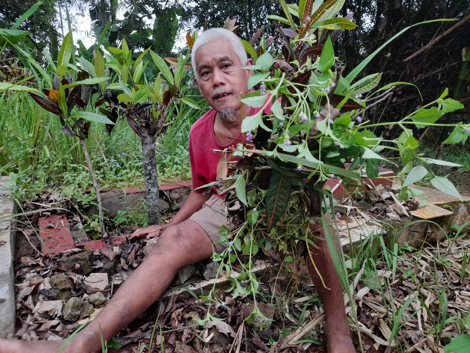 Abah hanya bisa makan seadanya, itu pun ia dapatkan bukan dengan membeli, melainkan memetik disekitar rumah. Tak heran beliau pun hanya makan nasi dan garam.