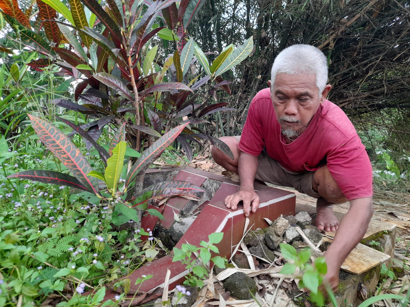 Berbekal tenaga renta, Abah Agus Terus bekerja membersihkan makam satu demi satu. Tubuh bungkuknya tak pernah menjadi penghalang untuk tidak bekerja.