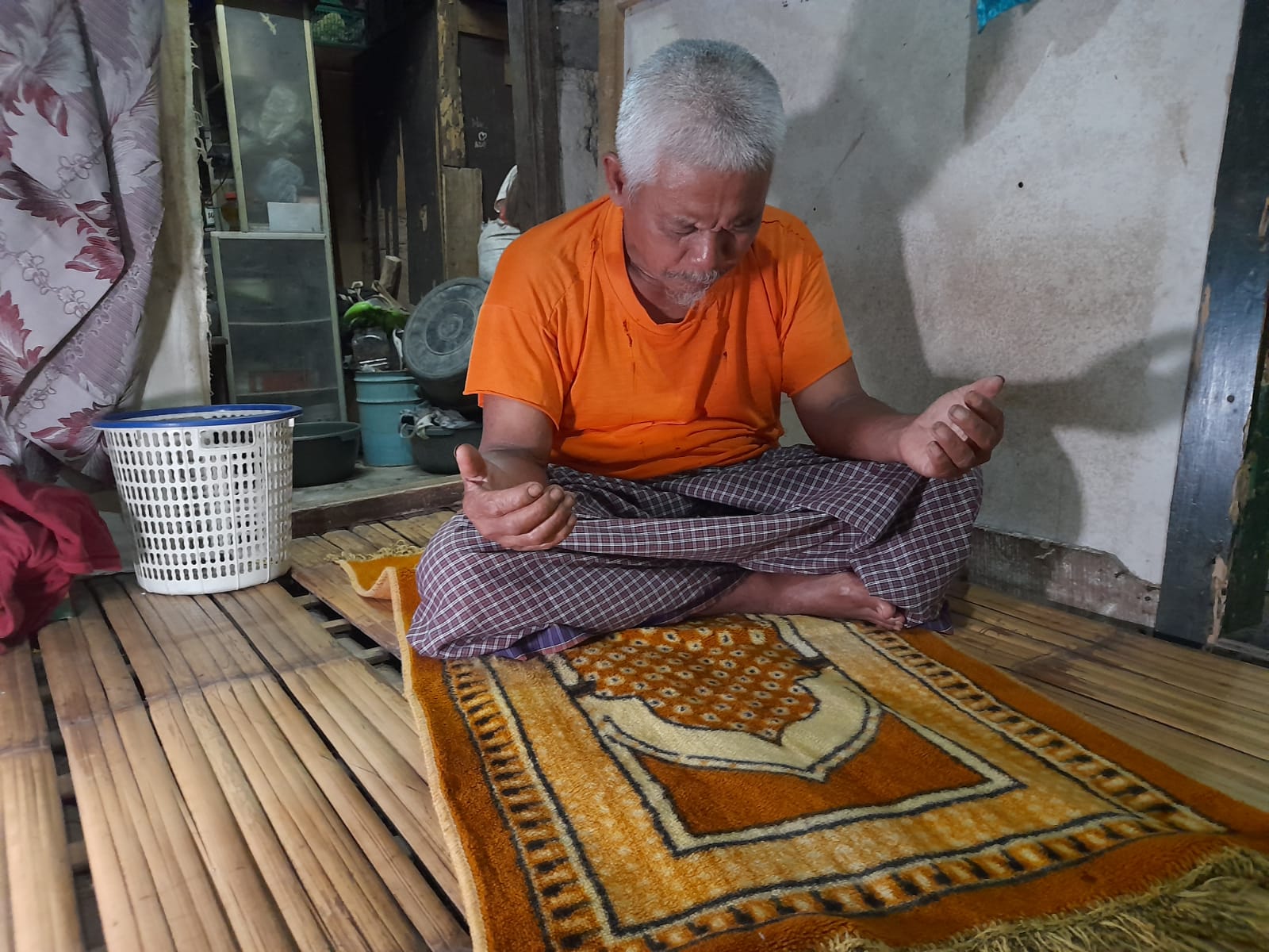 Kulit keriput dan tubuh ringkihnya menggambarkan beratnya perjuangan Abah Agus dalam menjalani kehidupan.