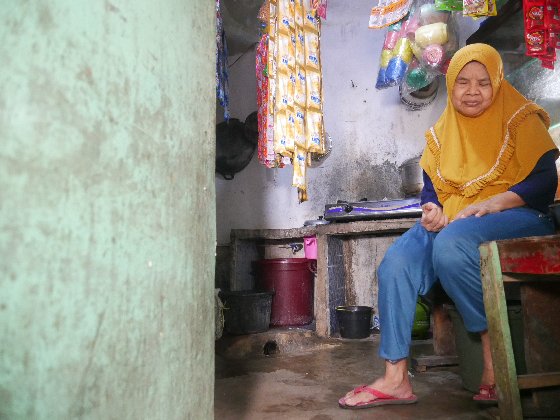 “Aa bisa nambang pasir kalo musim hujan aja. Kalo musim kemarau ga bisa karena pasirnya ga ada. Makanya mak buka warung jajanan anak-anak. Biar dapetnya kecil, paling 20 – 40 ribu sehari, tapi Alhamdulillah ada sedikit buat makan,” cerita Mak Puri.