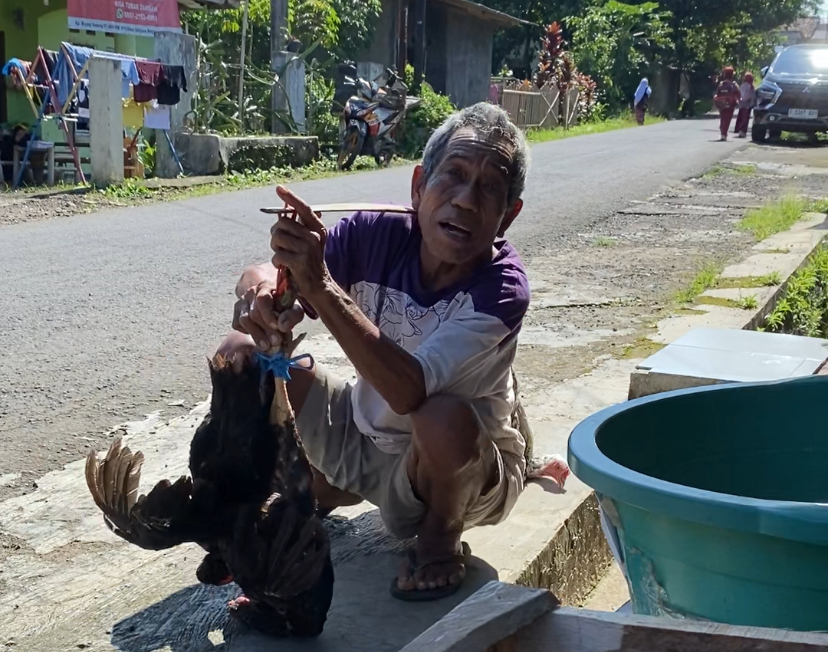 Dengan sisa tenaga, Abah berjalan sambil merangkak menjajakan jualan ayam demi bisa dapet upah uang 5000/ayam untuk beli beras, bagi Abah beras sangat berharga untuk makan meski tanpa lauk dan sayur.