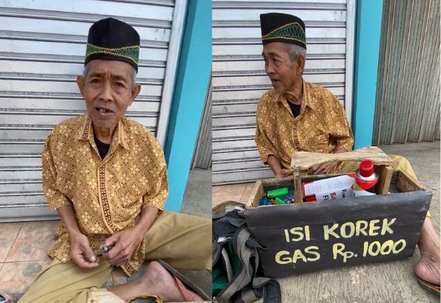 Sambil menahan lelah, Abah hanya bisa terus berjalan menyusuri jalanan dibawah terik matahari. Dalam setiap langkahnya ada secercah harapan, Abah hanya berharap ada orang yang mau mengisi korek gas atau memperbaikinya agar Abah bisa makan hari ini.
