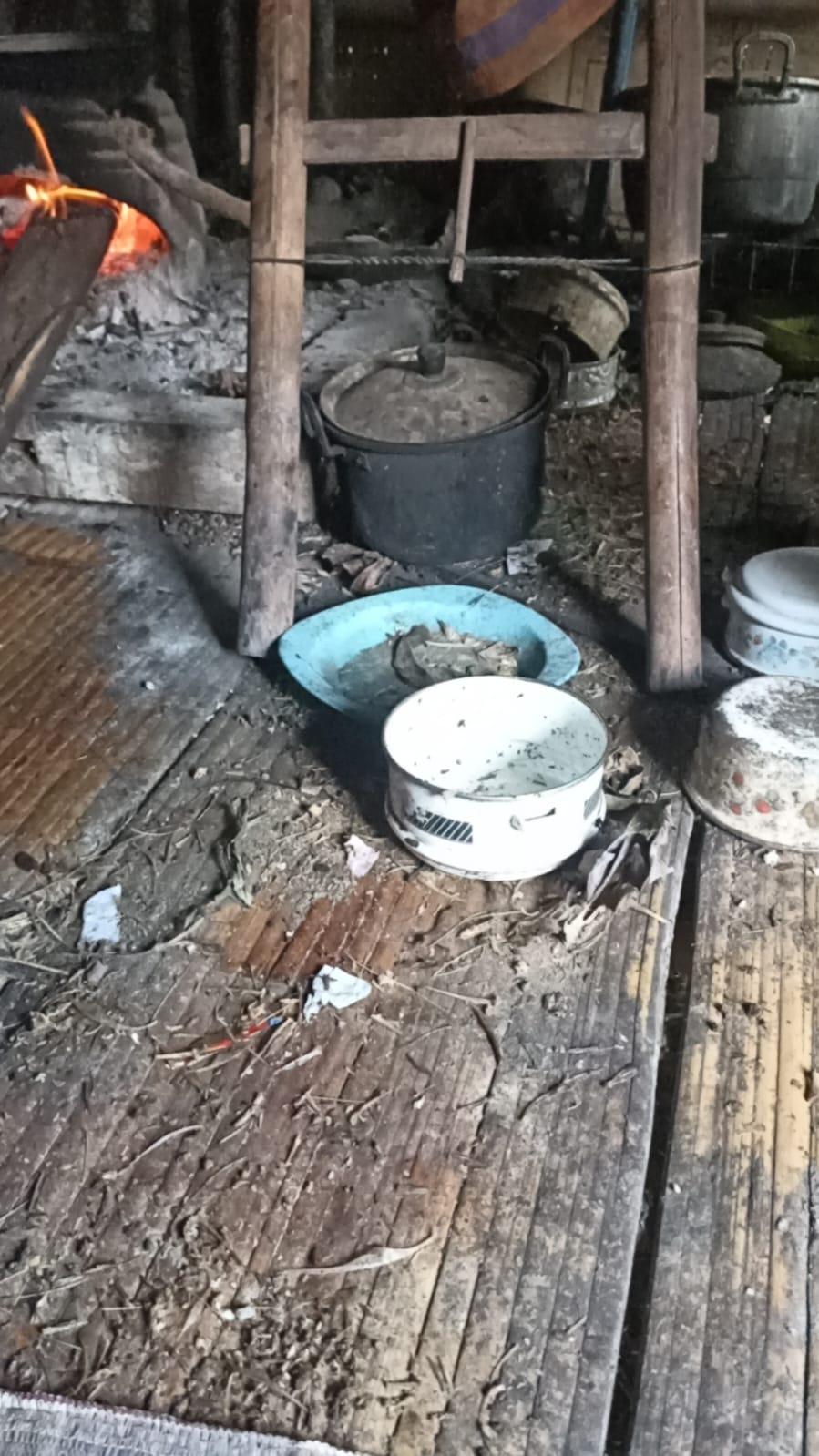 Kini abah Omo tinggal sendiri di gubuk sederhana berukuran 2*3 meter. Tempatnya tidur dengan tungku kayu bakar tempat ia mengolah makanan pun ruangnnya tidak terpisah, sehingga abu dan debu berserakan itu bersampingan dengan tempat ia tidur.