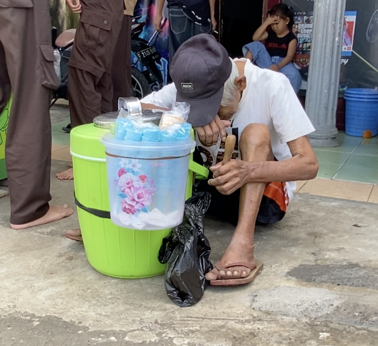 Dengan tubuh yang sudah renta dan sering gemetar, Abah berjuang hidup sehari-hari dari jualan es nongnong (es krim jadul). Jika semua es nya laku Abah bisa bawa pulang uang 40ribu sisa modalnya.