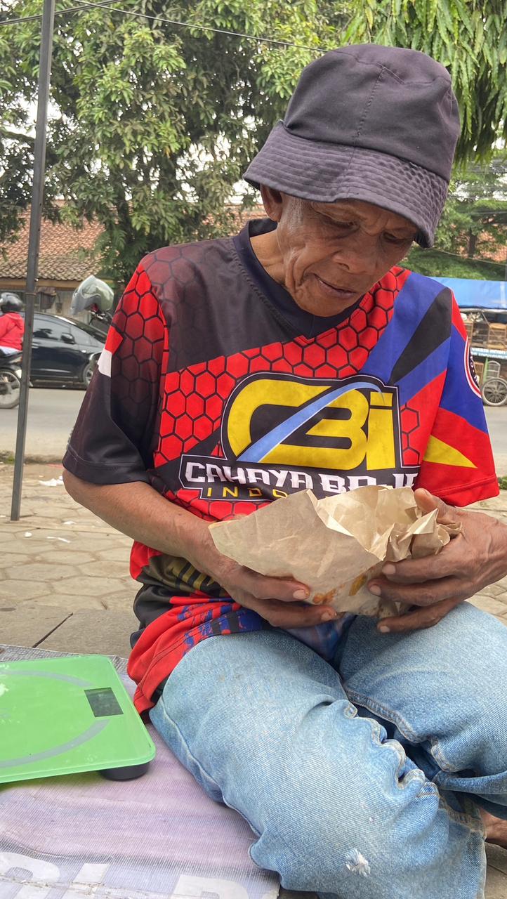 Beliau adalah Abah Udip, usianya kini 70 tahun sehari-hari mencari nafkah dengan menawarkan jasa ukur berat badan dan cek tensi tekanan darah dengan alat timbangan dan cek tensi yang sudah lusuh yang ia miliki.