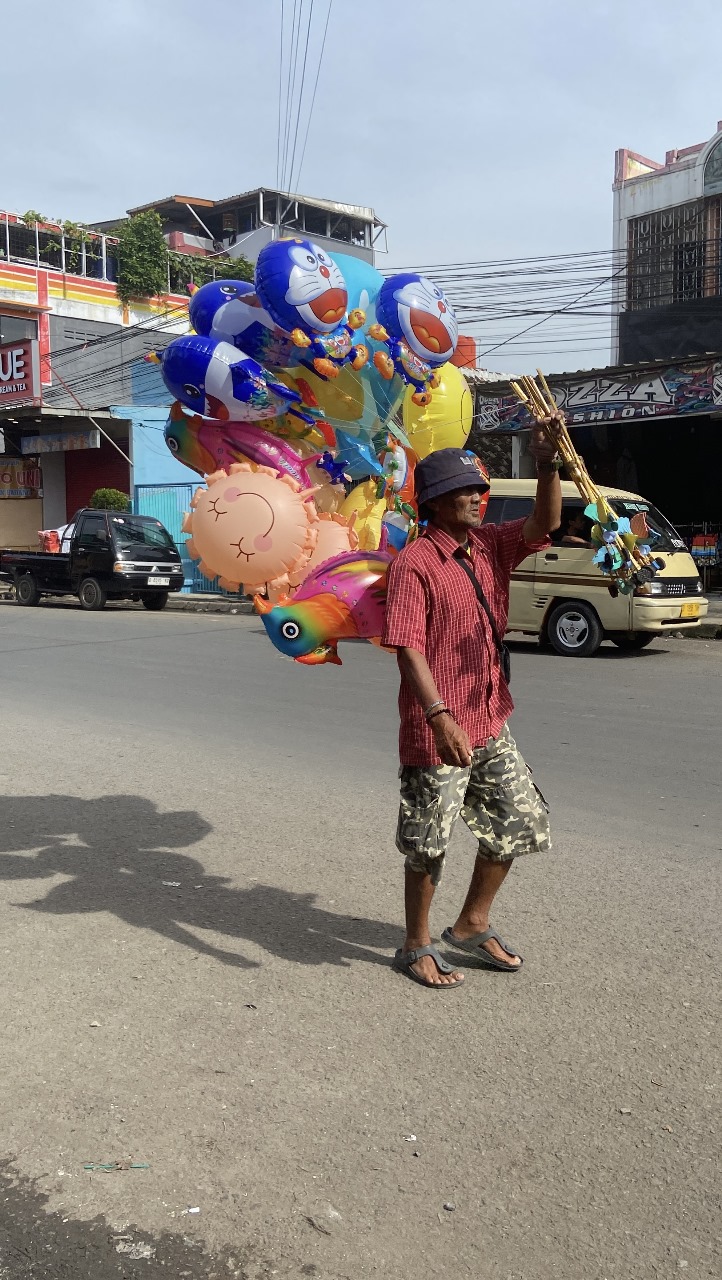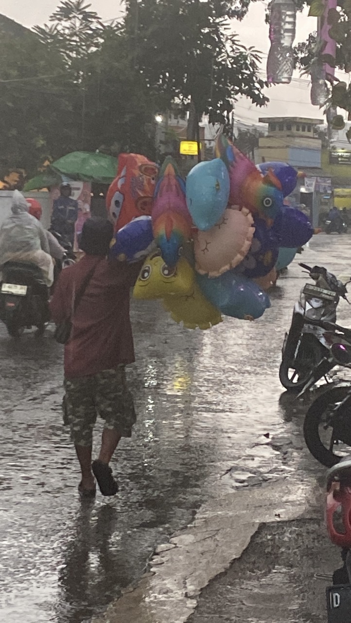 Panas terik tidak ia hiraukan, hujan pun akan ia tembus, dengan menenteng balon-balon udara ditangannya yang sudah tua dan keriput.