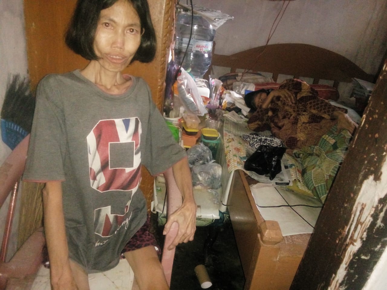Ibu Nanah adalah kakak kandung Ibu Fuji yang sama-sama mengalami kelumpuhan, bahkan lumpuh total. Ibu Nanah hanya bisa terbaring di tempat tidur selama 7 tahun terakhir ini sehingga Ibu Fuji lah yang merawatnya.