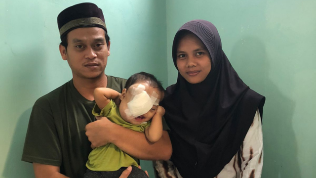 “Kaget banget waktu dokter bilang anak saya sakit tumor orbita, wajah Aleeza sampai bengkak dan nangis terus setiap hari. Saya tidak tega tapi saya tidak punya uang tuk obati Aleeza di Jakarta” – ibu Aleeza.