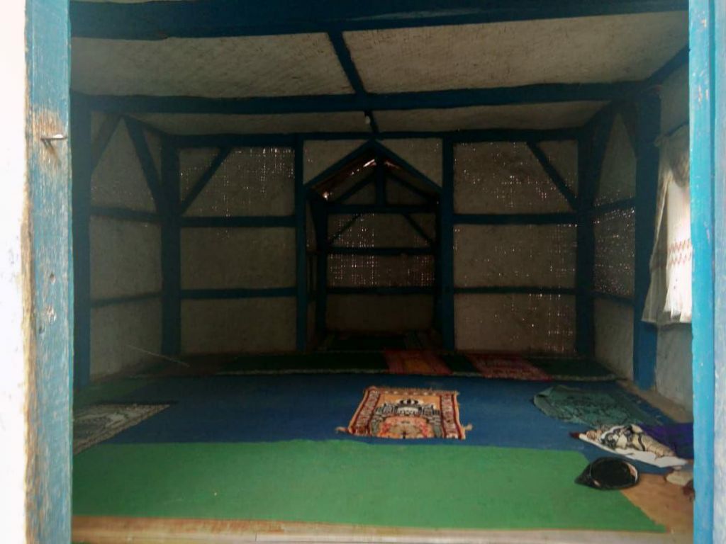 Masjid yang beratapkan bilik bambu ini terancam roboh, tiang-tiang penyangganya keropos dimakan usia, saat musim hujan datang atapnya mulai tidak mampu menahan derasnya air hujan yang akhirnya bocor dan membasahi area masjid.