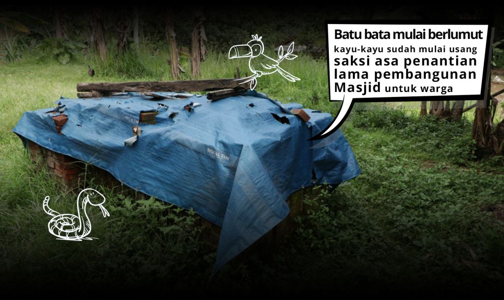 Padahal bahan-bahan untuk pembangunan masjid sudah dikumpulkan dan kini hanya menumpuk di sekitar tanah wakaf masjid. Batu bata mulai berlumut, kayu-kayu sudah mulai usang. Ini menurunkan asa dan cita-cita warga untuk memiliki masjid yang nyaman.