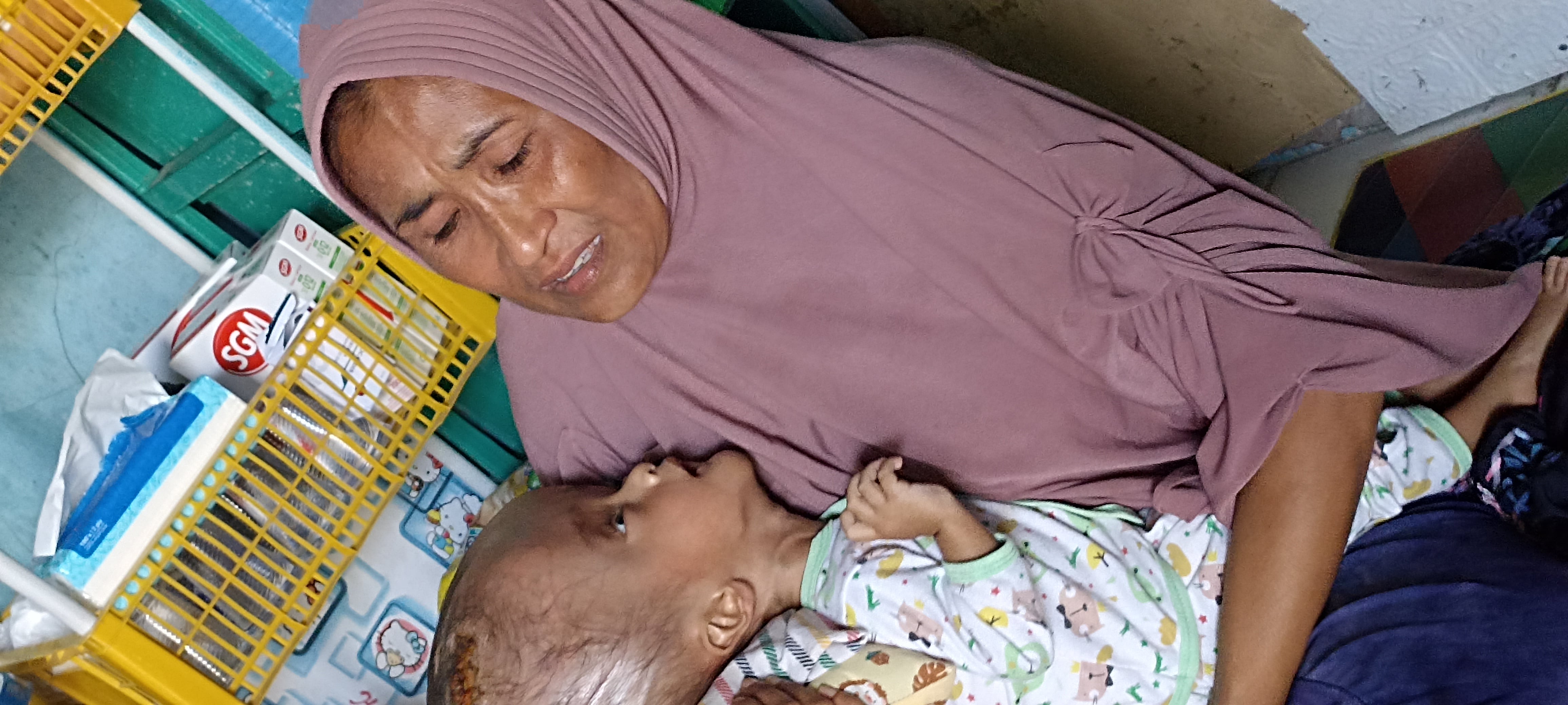 “Seandainya bukan anak saya, saya gak kuat buat rawat dia, tapi ini anak saya, lahir dari rahim saya” Isakan tangis ibu Sumiati melihat kondisi sang anak.