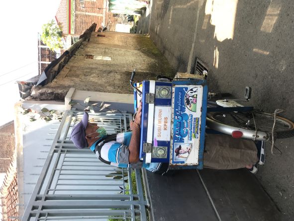 "Biasanya saya jualan di sekolah-sekolah, tapi sekolah diliburkan, jadi mau gak mau saya harus berjualan keliling lebih jauh." Ujar Abah Frans.