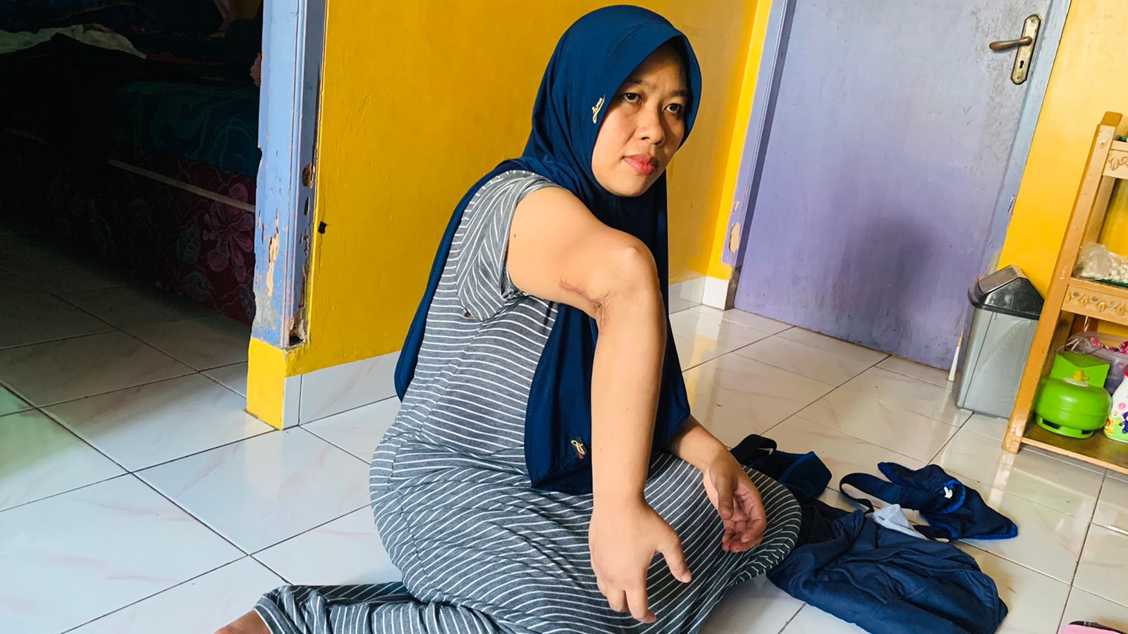 “Iya tangan sakit kalau dipake aktivitas, tapi gak apa-apa bisa pake penyangga jadi ga terlalu sakit. Lumayan kalau jualan tuh jadi ada buat ongkos berobat. Soalnya suami juga cuma buruh bangunan, kerjanya ga nentu jadi penghasilannya juga ga nentu.” – Bu Rohanah