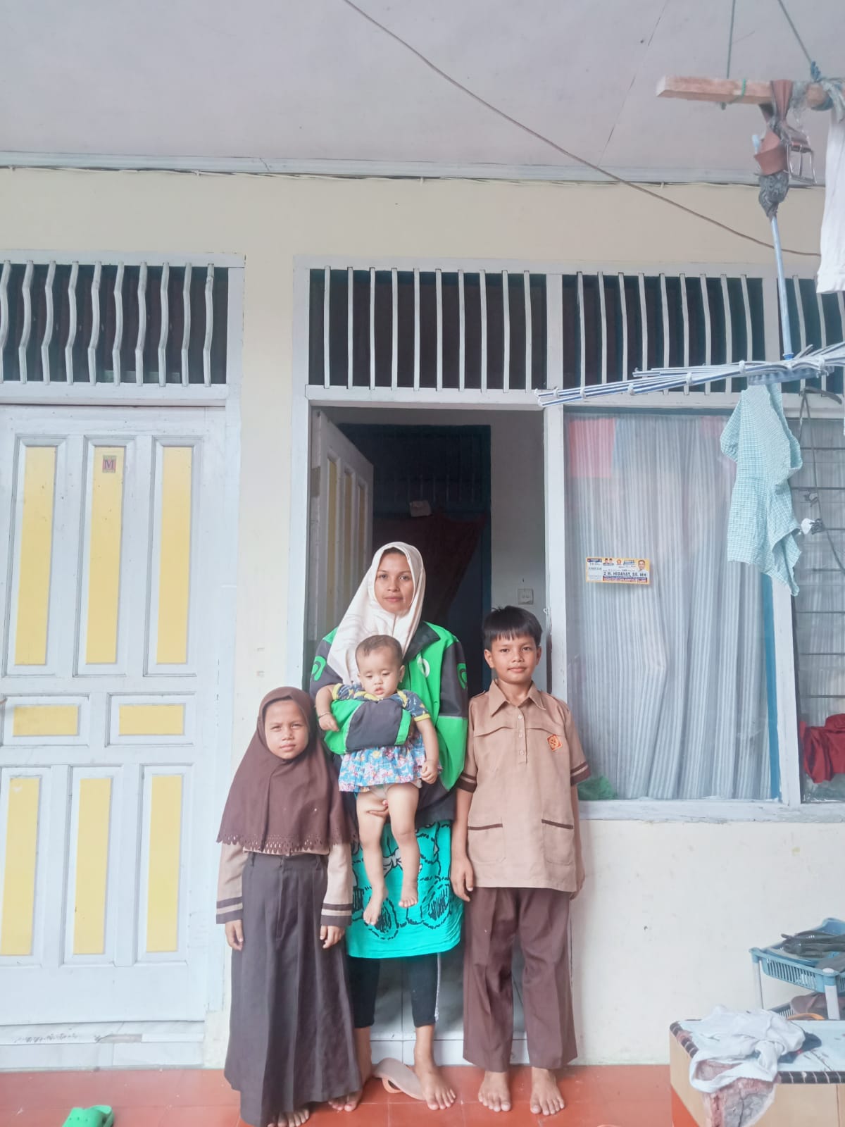 Bu Vera (30) seorang wanita tangguh yang berjuang menghidupi ke 3 anak yatim nya seorang diri. Sedangkan anak-anaknya juga masih kecil, Nouval (11), Keyla (8) dan Vina (1). Suaminya meninggal sejak 8 bulan lalu karena sakit yang dialami.