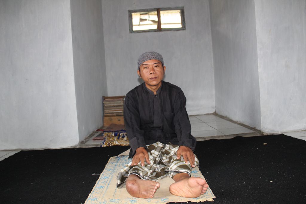 Ustadz Samsudin (38 thn) harus rela sesekali menahan sakit demi berdakwah. Dengan kaki yang tak sempurna, beliau harus susah payah turun naik bukit dan jalan setapak penuh batu, agar bisa sampai ke masjid tempatnya mengajarkan Al-Quran dan agama kepada masyarakat sekampung.
