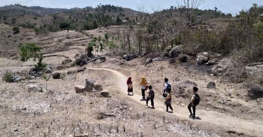 Hari begitu panas, tanah tandus, sumur-sumur mengering, namun tidak mengeringkan semangat anak-anak Madrasah Ibtidaiyah Nurul Islah untuk bersekolah.