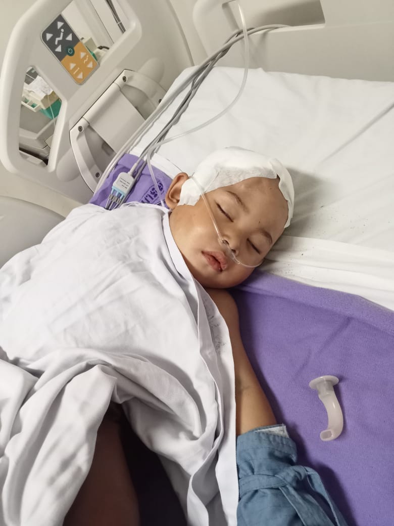Umurnya masih sangat kecil, Tama masih berusia 4 tahun dan di diagnosa tumor ganas di kepalanya saat usianya 9 bulan.
