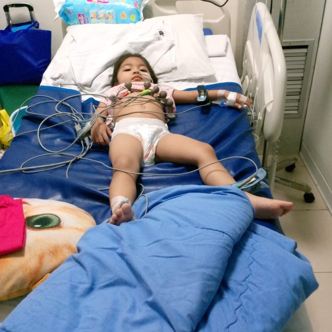 Siapa sangka gadis kecil cantik ini harus begitu keras memperjuangkan hidupnya dengan selang makan dan segala obat-obatan. Hana Khaerunnisa (4 th), putri ketiga dari bapak ojol yaitu pak Abdul Ghofur. Hana divonis menderita Esofagitis Erosiva dan Kolitis setelah tiba-tiba mengalami BAB dan muntah darah.